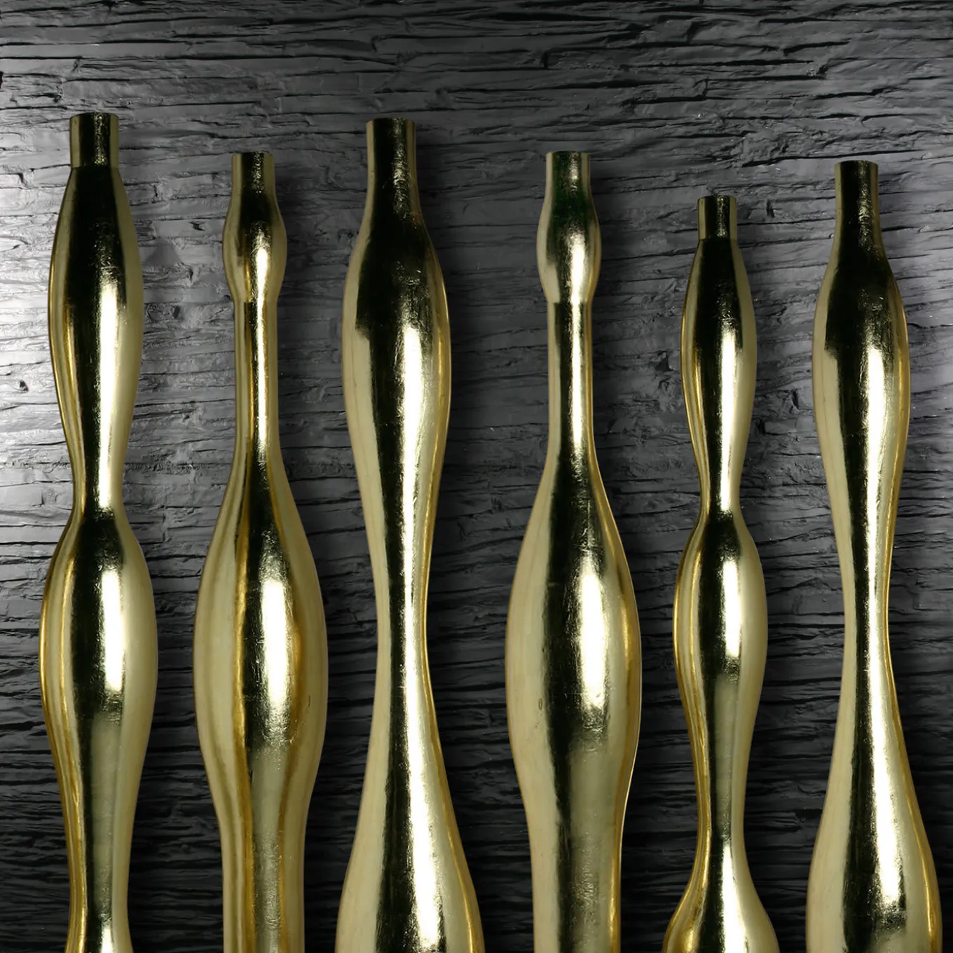 A stunning decorative piece ideally matched with the Madam Vase in the same finish, the Copine (young girl in French) boasts a tall (231cm), sinuous shape entirely crafted of resin and enriched with gold leaf, Bold and sophisticated, this extraordinary piece will bring a luxurious touch to any indoor and outdoor setting.