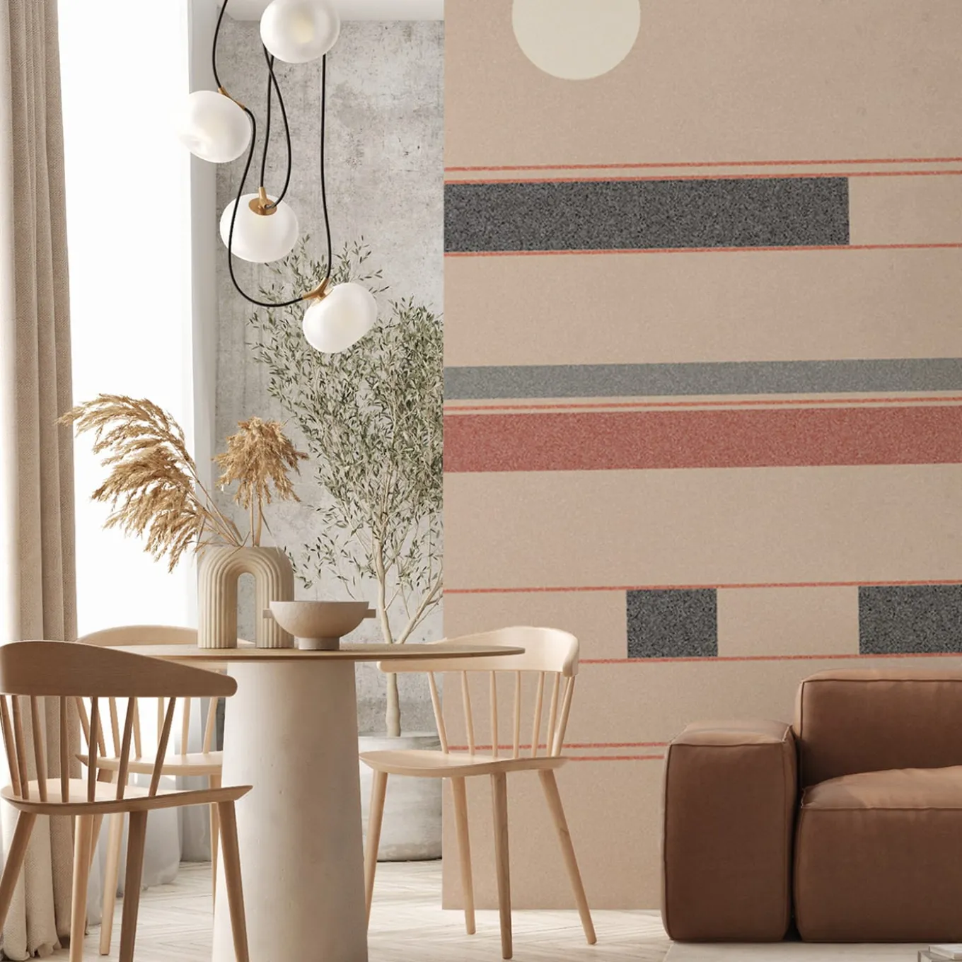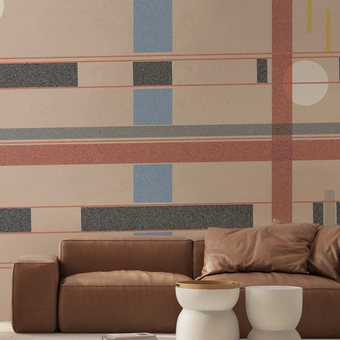 Inspired by the celebrated works of abstract expressionist artist Kandinsky, this gorgeous wallpaper boasts a composition of geometric form in light blue, white, gray, yellow, and red enhanced by an imposing central red cross. Suitable for the cladding of interior walls, it is fireproof, unscented, breathable, and hypoallergenic. Made of cellulose, textile fibers, and vinyl, it is also available in fiberglass or ECO versions upon request. The price is per squared meter.