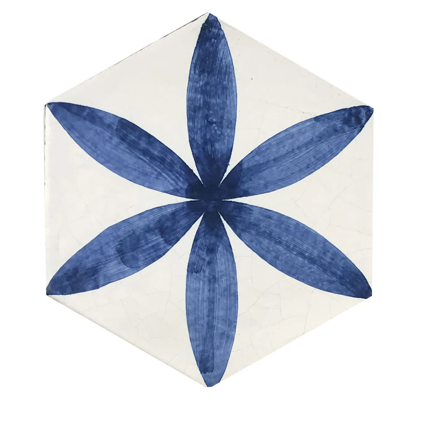 Crafted and decorated by hand with exceptional expertise, this gorgeous set of 28 quirky cotto tiles merges tradition with timeless sophistication. Boasting a hexagonal profile measuring 20 x 20 x 1.8 cm (LxWxH), each tile features an elegant blue floral decoration, available in a wide selection of motifs and colors, please consult the Artemest catalog for options.