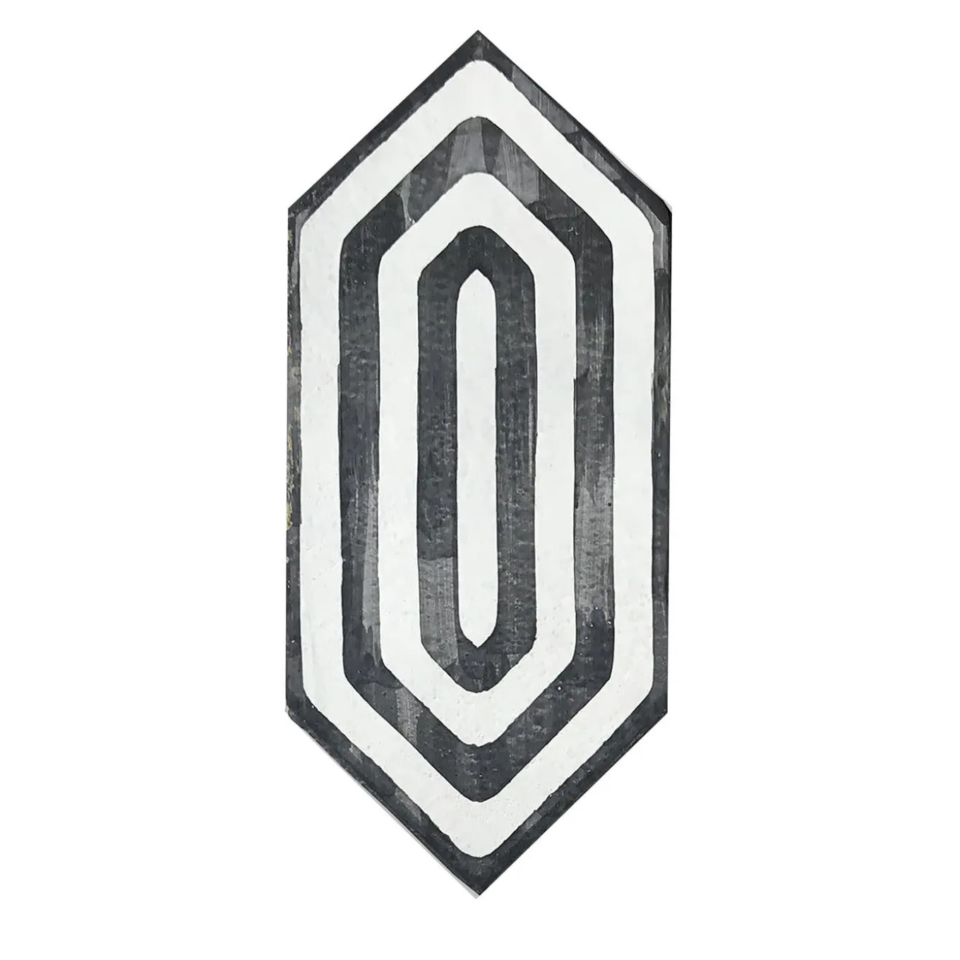 Distinguished by a lively and sophisticated character, this set of 38 quirky cotto tiles is an elegant blend of traditional craftsmanship and modern inspiration. Boasting a rhomboid profile with 27 cm-long sides, 12 cm-long angles, and 1.8 cm thickness, each tile features a captivating black and white decoration, available in a wide selection of motifs and colors, please consult the Artemest catalog for options.