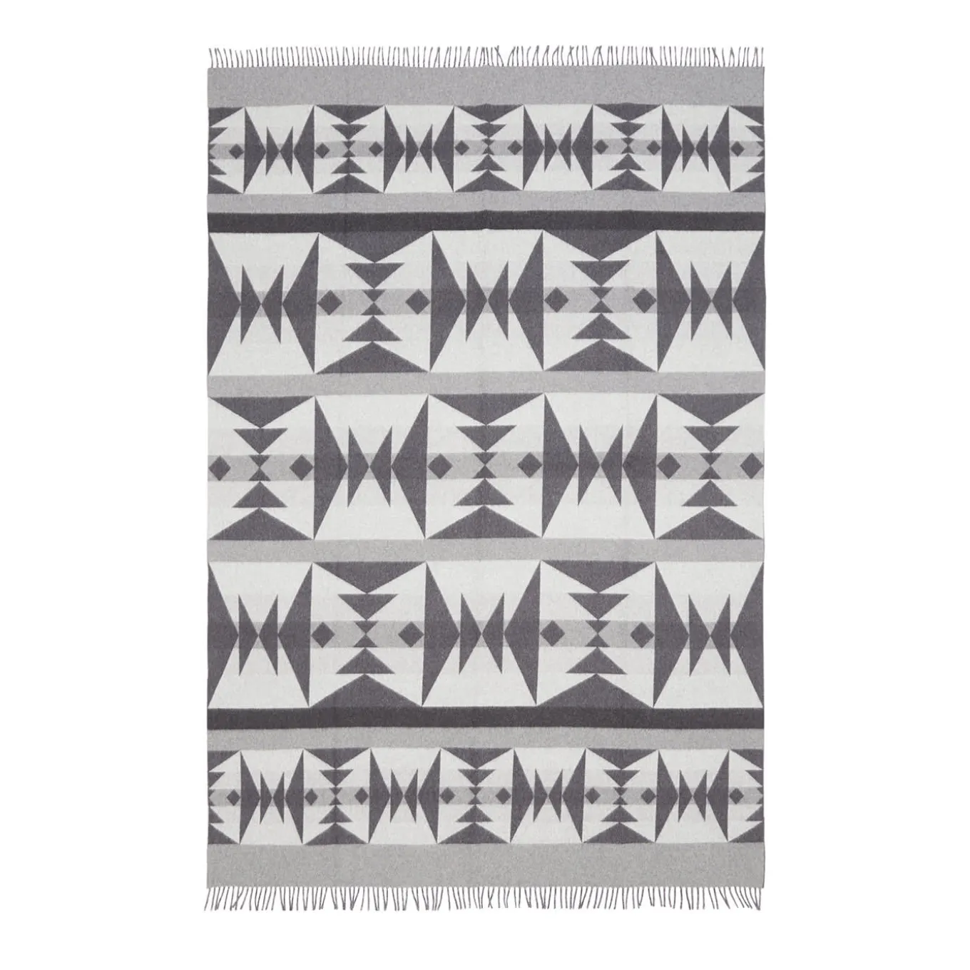 This sophisticated small blanket in fine cashmere will adorn any bed or sofa with its eye-catching design inspired by Native American patterns. Finished with fringes and marked by elegant neutrals, it can effortlessly complement classic or contemporary decors, alike. The hand-finished details attest to the piece’s superb sartorial quality.
