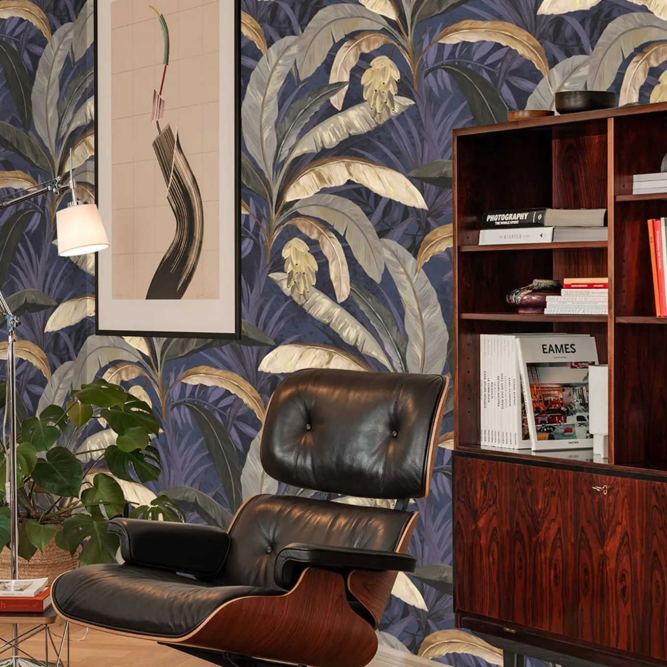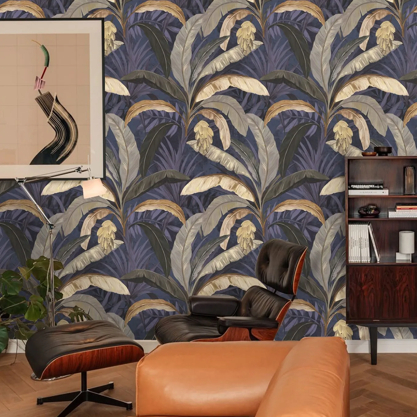 Ecological wallpaper, crafted from vegan water-based inks, designed and printed in Italy using the most advanced technologies. Versatile for walls, shelves, and furniture. This captivating wallpaper will transform any room adding a relaxed and tropical vibe, complementing dark furniture or standing alone as a striking feature wall. Instructions are included. The price refers to one package containing 8 sheets of premium wallpaper. Each sheet measures 27.5 x 39.4 inches (70 x 100 cm), for a total coverage of 59.2 sq. ft. (5 mq).