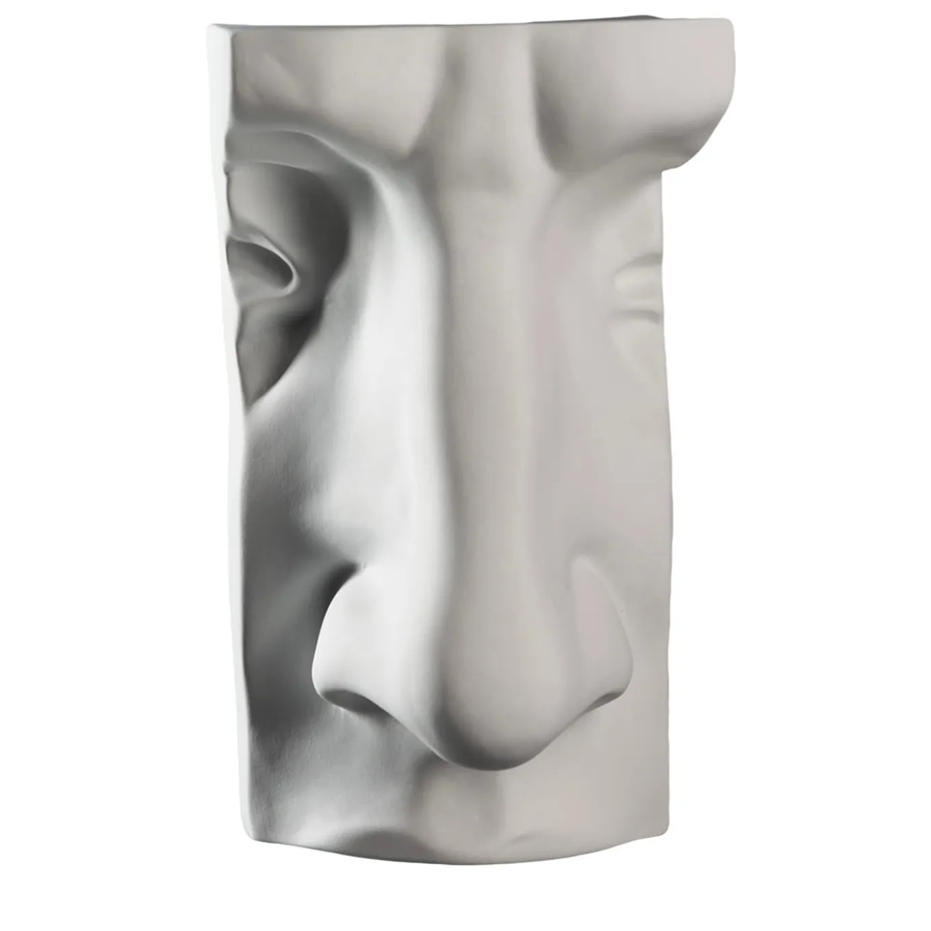A section of Michelangelo’s David is featured in this fragment-like sculpture distilling unmistakable eclectic charm. Fashioned of fine ceramic and coherently offered in a matte-white look, it is focused on his nose, allowing for a very limited view of the brows, eyes, and upper lip. It will make for a spot-on piece for luxe private or hospitality contexts.