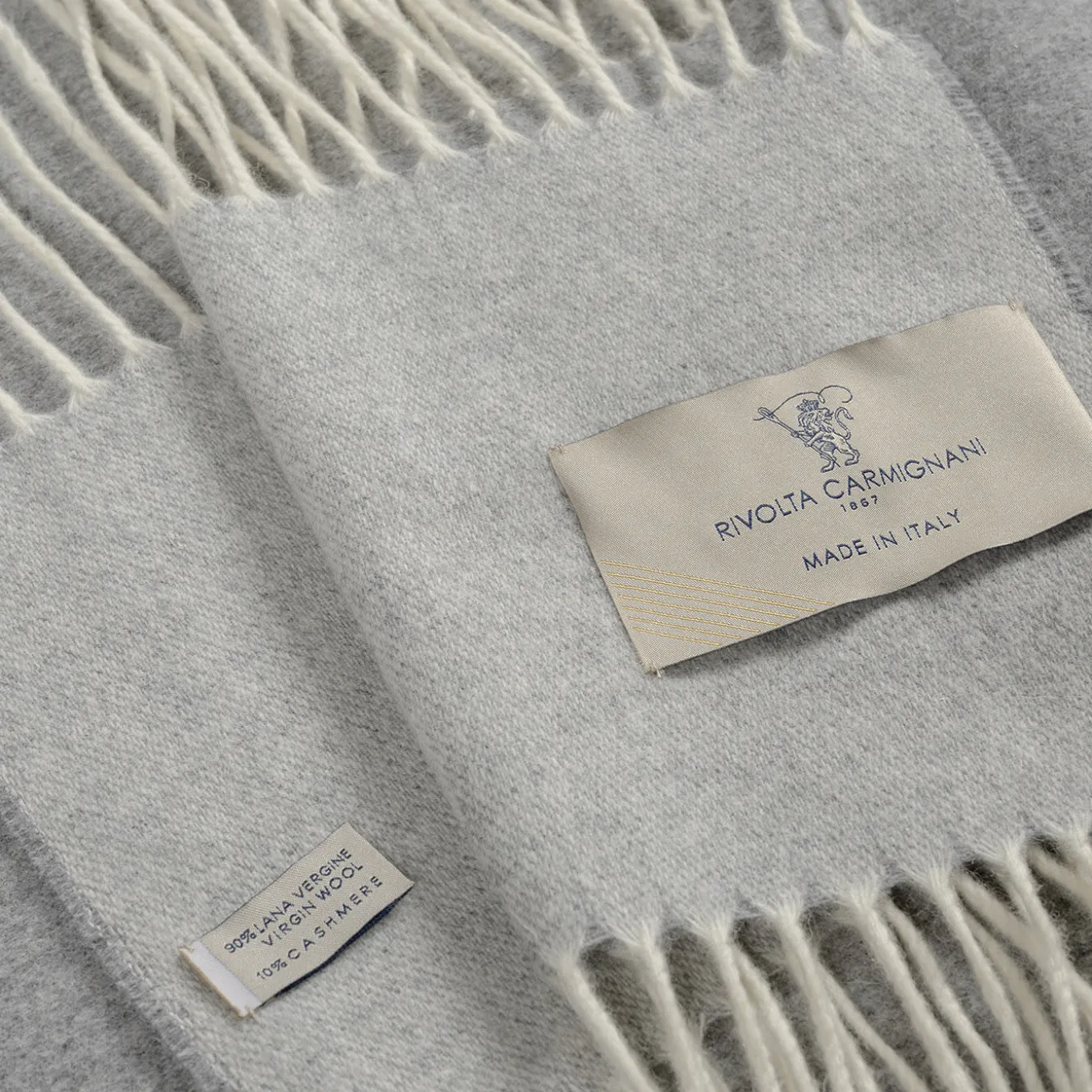 Unique in its loose openwork design matching the delicate fringed details, this small blanket from the Defilé Collection was inspired by an ancient Tuscan technique where precious trousseaus’ yarns were unthreaded by hand. Its peculiar weft – achieved by means of cutting-edge technologies – combines 90% Merino wool and 10% cashmere. Please dry clean only.
