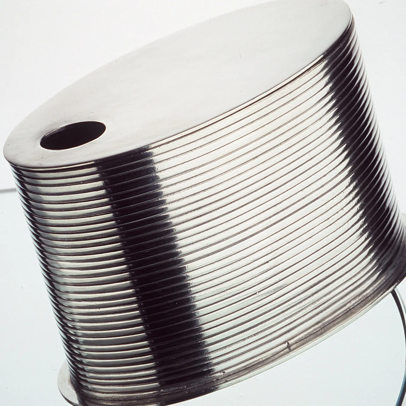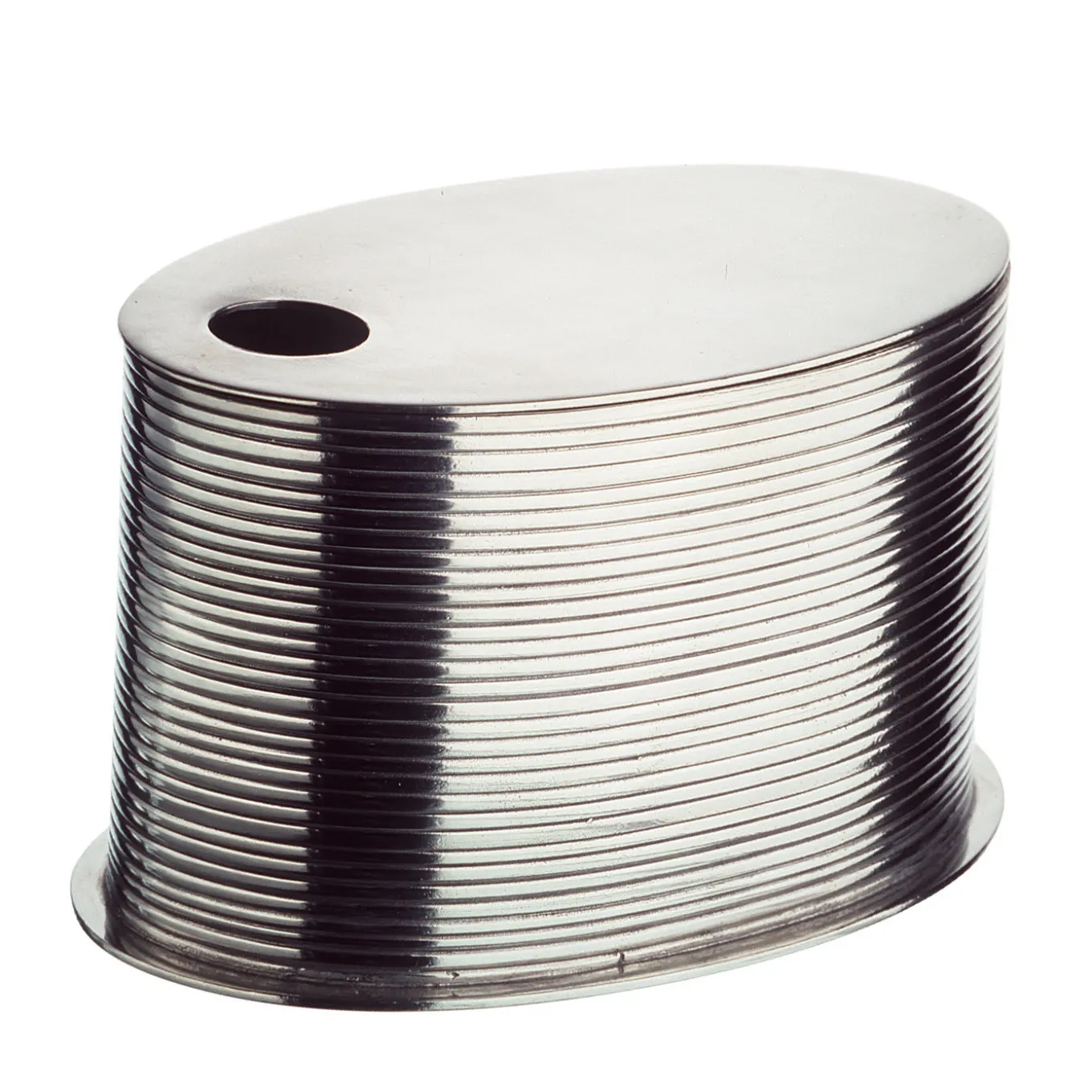 Part of the Metallia Project, this box is a limited edition designed by Mario Trimarchi and Marco Susani. Crafted of metal, its oval silhouette is enriched with a series of grooves that create a splendid interplay of lights and shadows. The lid is smooth and equipped with a hole that makes it easier to open.