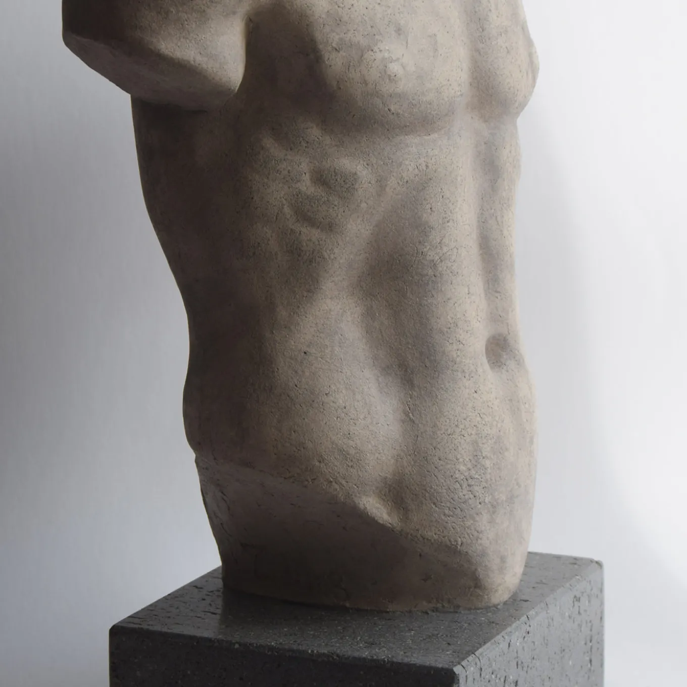This ceramic sculpture of a male torso is modeled on the original Discophoros housed at the Louvre. Measuring 41 cm in height including its basalt base, the piece weighs 8 kg. It features an antiqued finish with special patinas that evoke the appearance of classical museum sculptures. Crafted in the certified Todini laboratory recognized for its cultural and aesthetic value, this decorative object combines artistic heritage with quality craftsmanship. One-of-a-kind piece.