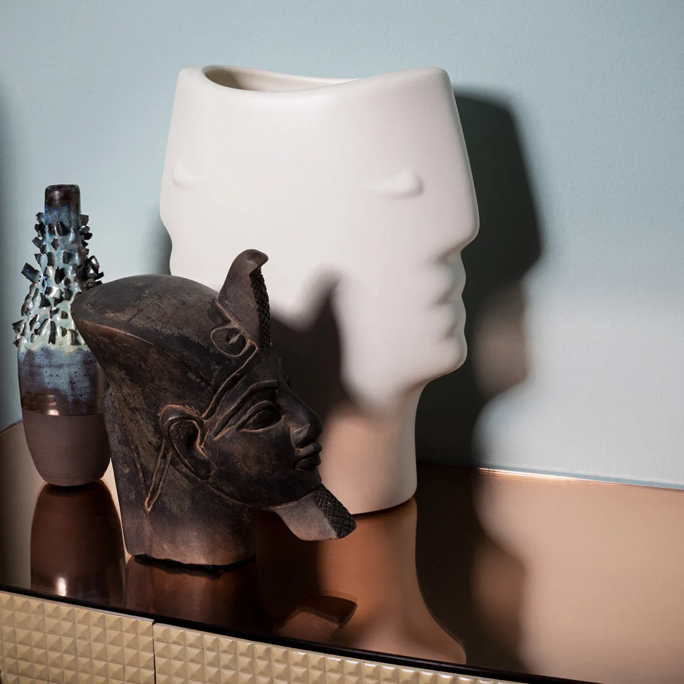 An iconic piece, a historic signature of Italian design. A vase in white clay, hand cast, with a matte white glaze finish. Designed by Ambrogio Pozzi.