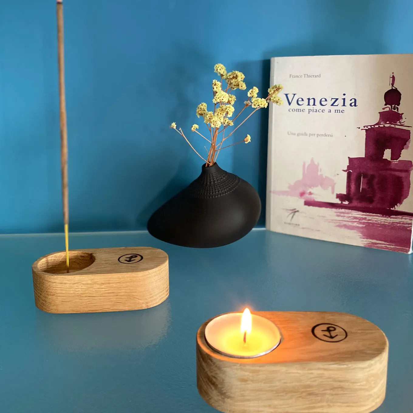 Designed by Marco Zito for a precious series of designs handcrafted using wood recycled from the wooden pile moorings from the Venice Lagoon, this exquisite set of six precious candle holders will effortlessly adorn any style interior. Hosting vertical candles, tea lights, or incenses, it is named after the address of the Basilica di Santa Maria della Salute Church of Venice, built to commemorate the end of the plague that afflicted Venetians between 1630 and 1631.