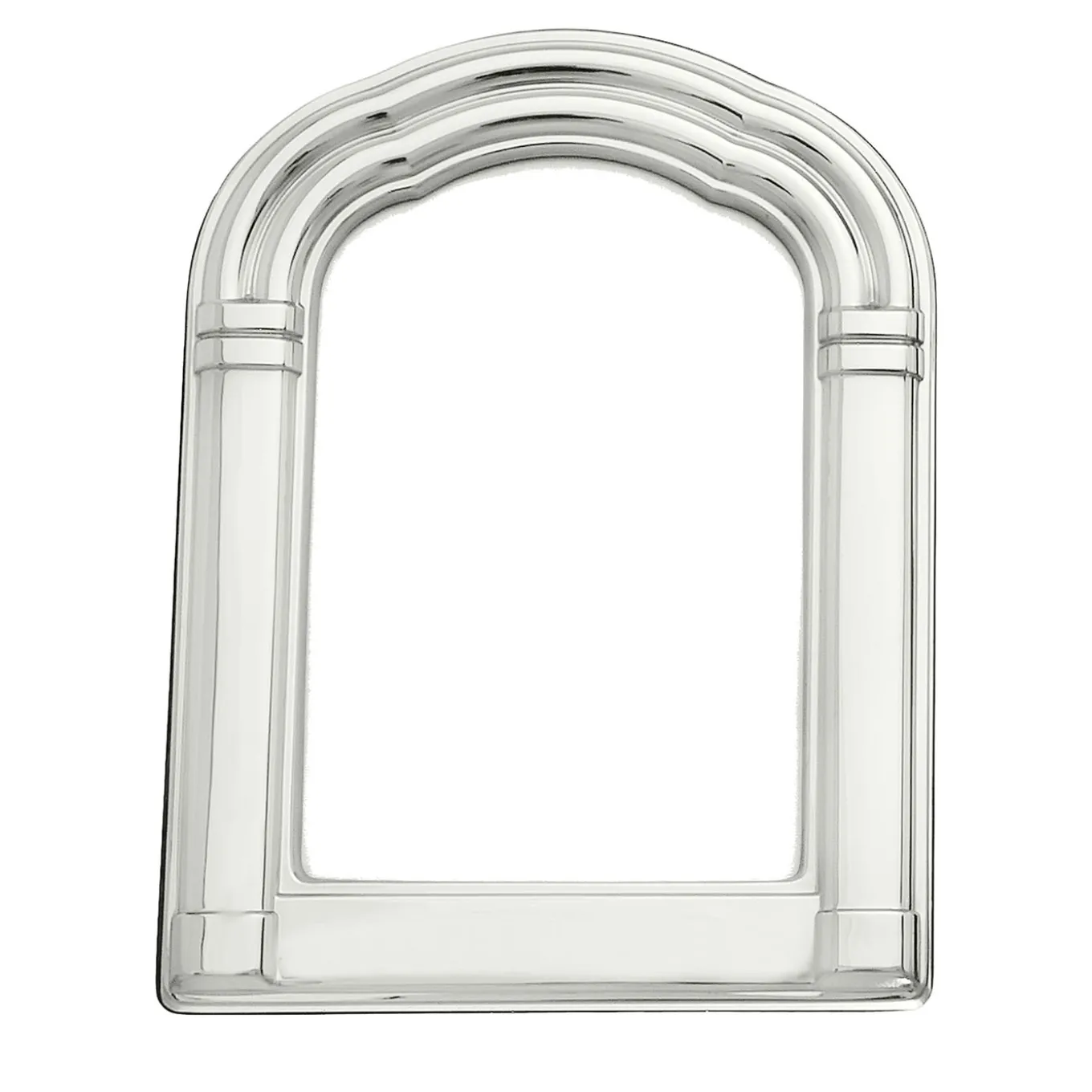 This 925 sterling silver frame is the perfect way to commemorate a special moment. Characterized by a decorative contoured top with ridged detailing, this traditional frame is fitted with a smooth mahogany back and moiré fabric inside. The Double Band Arched Frame is finished with Schiavon logo closures for an exclusive touch.