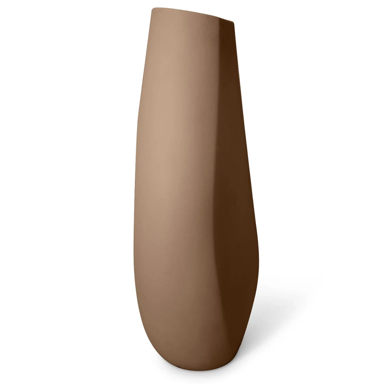 This elegant jar vase, with a sleek design, is enhanced by a geometric droplet-shaped detail and is available in two versions that combine style and functionality. The tall version: a large piece that serves as a decorative floor vase. Perfect for decorating entryways or stair corners, it stands out with its distinctive presence, looking great both empty and adorned with branches and leaves. It can be paired with the smaller, open version, ideal as an umbrella stand thanks to its capacity. Blending practicality with aesthetics, it becomes both a useful and decorative accessory. A pair of items that enhance spaces with versatility and timeless design.