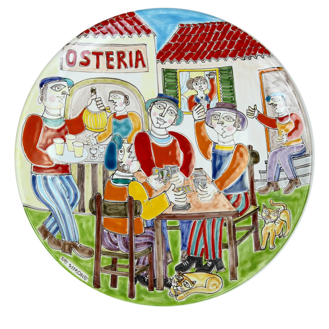 Crafted and painted by hand in full Sicilian tradition, the DS Osteria Plate depicts a classic dining scene. Perfect for showing your love of Sicilian lore, the plate is designed to be displayed in a traditional kitchen or dining area. Each piece is signed and shipped with a certificate of authenticity.