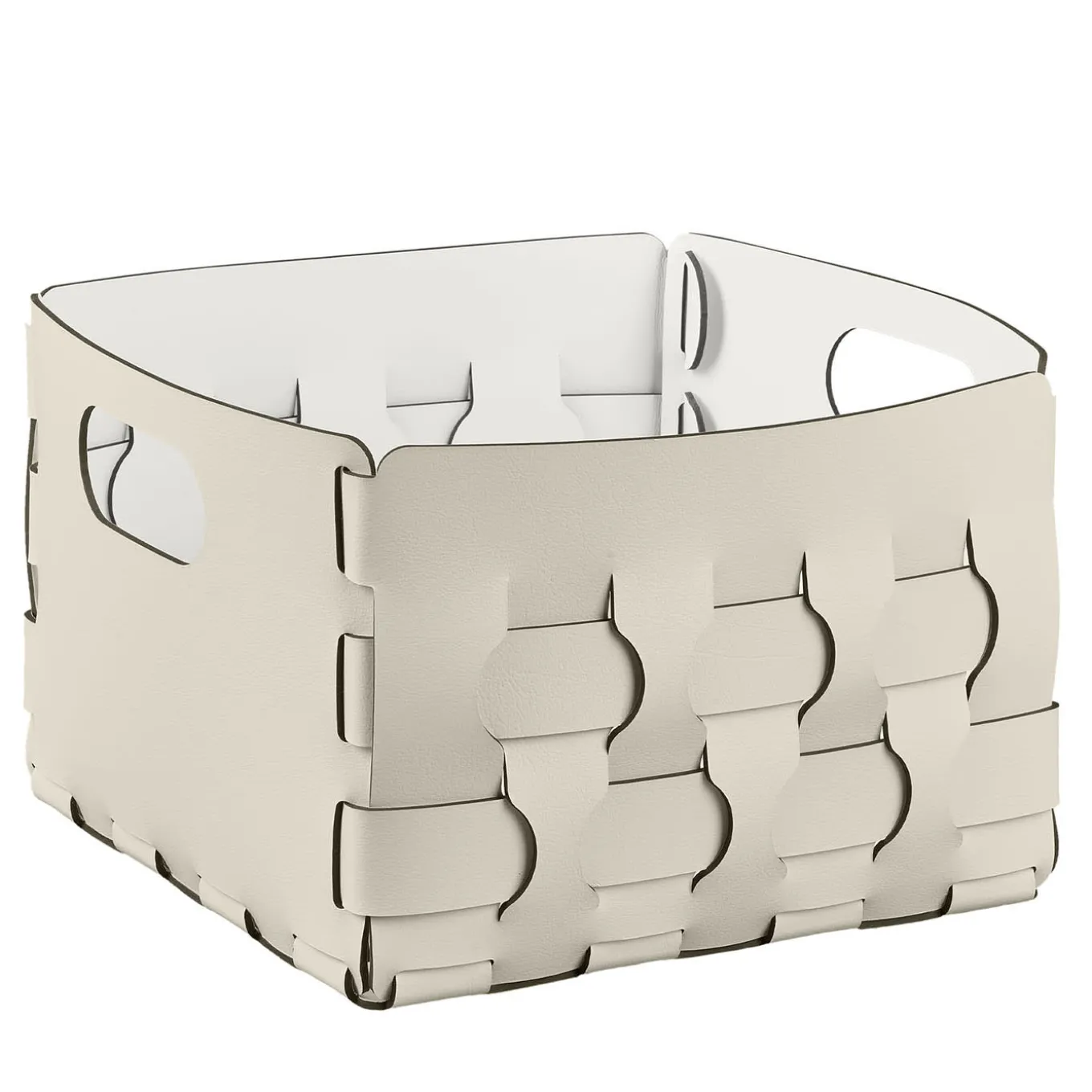 Crafted with superb precision, Ekaterina Borovkova’s basket redefines storage elegance. Its chunky wave wicker pattern of rectangles and squares not only organizes linen, slippers, blankets, toys, or sports gear but transforms everyday storage into an art form. Adorned in the serene hues of Panna Cotta/White, this piece marries functionality with avant-garde design.
