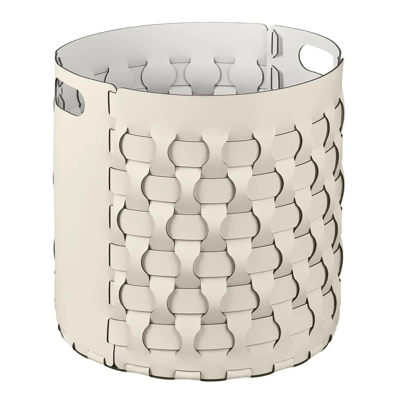 Distinguished by its spacious and intricate weaving, this elegant round basket by Ekaterina Borovkova serves as a versatile storage solution for laundry, hats, plaids, toys, or sports equipment. Additionally, it transforms into a sophisticated cache-pot, complete with a convenient textile bag inside. Presented in a soothing Panna Cotta hue, this piece exemplifies both functionality and aesthetic finesse, making it a standout addition to any interior space.