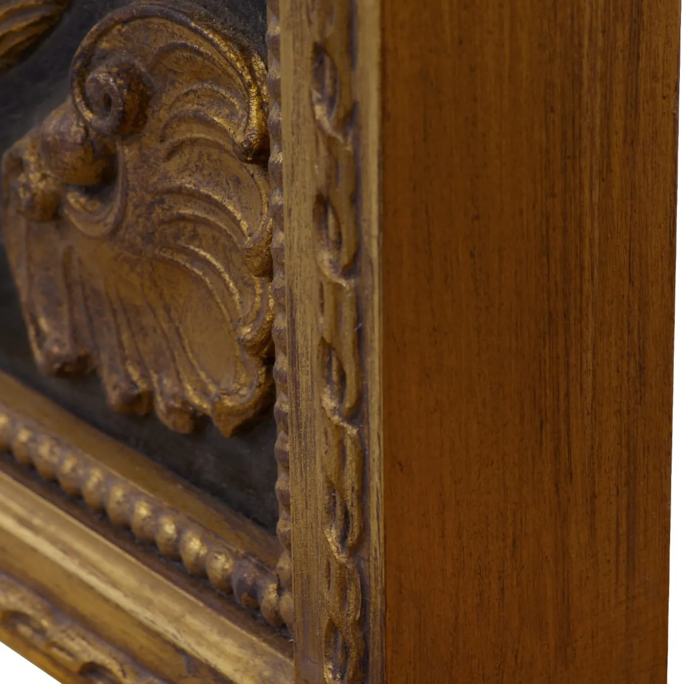 Handmade by expert artisans, this precious design will exquisitely decorate a bedroom or living room decor of a classic or eclectic style interior. Made of ebony wood, it is decorated with golden details lending it a plush and vintage character. Please inquire with the Concierge for further information.