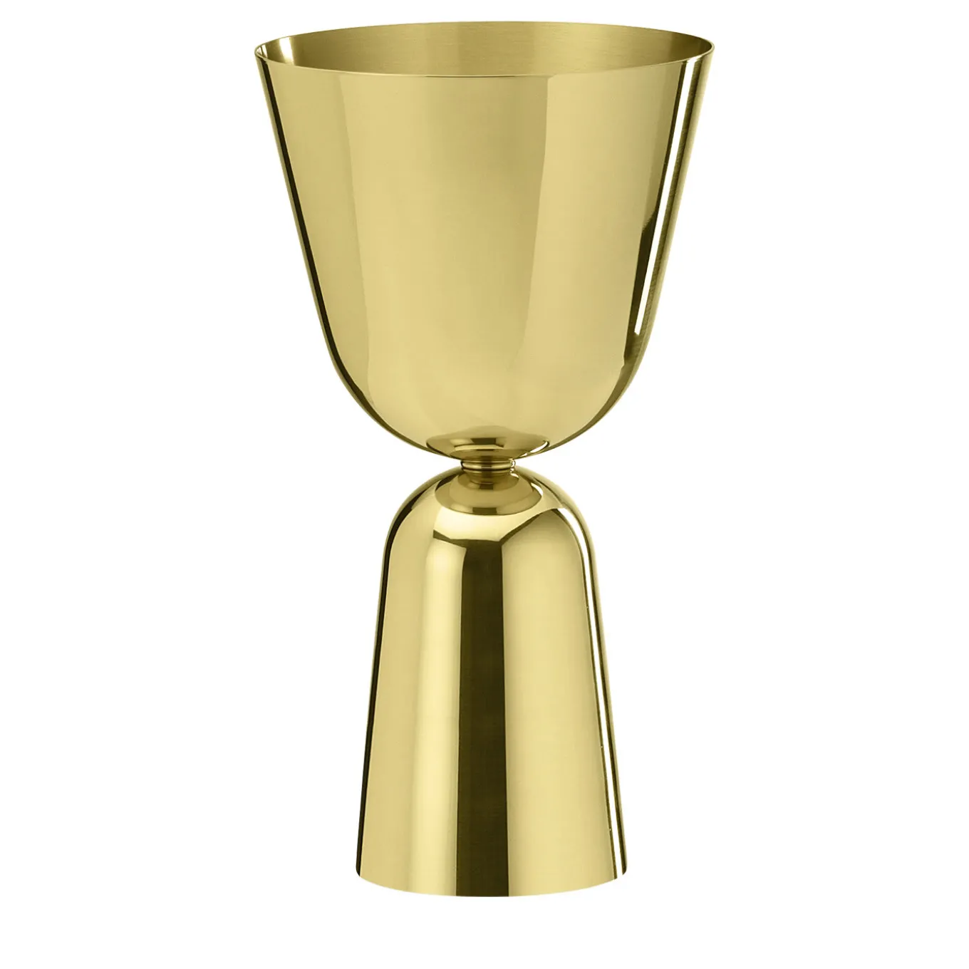 Elegant and sophisticated this vase was made entirely in brass and the warm glow of its finish strikingly complements the gentle curves of its volumes. Both base and body have a gentle conical shape and can be displayed on either side, creating different composition and adapting to a variety of flower arrangements. This piece is part of the Flirt collection and can be used alone or combined with others from the same series.
