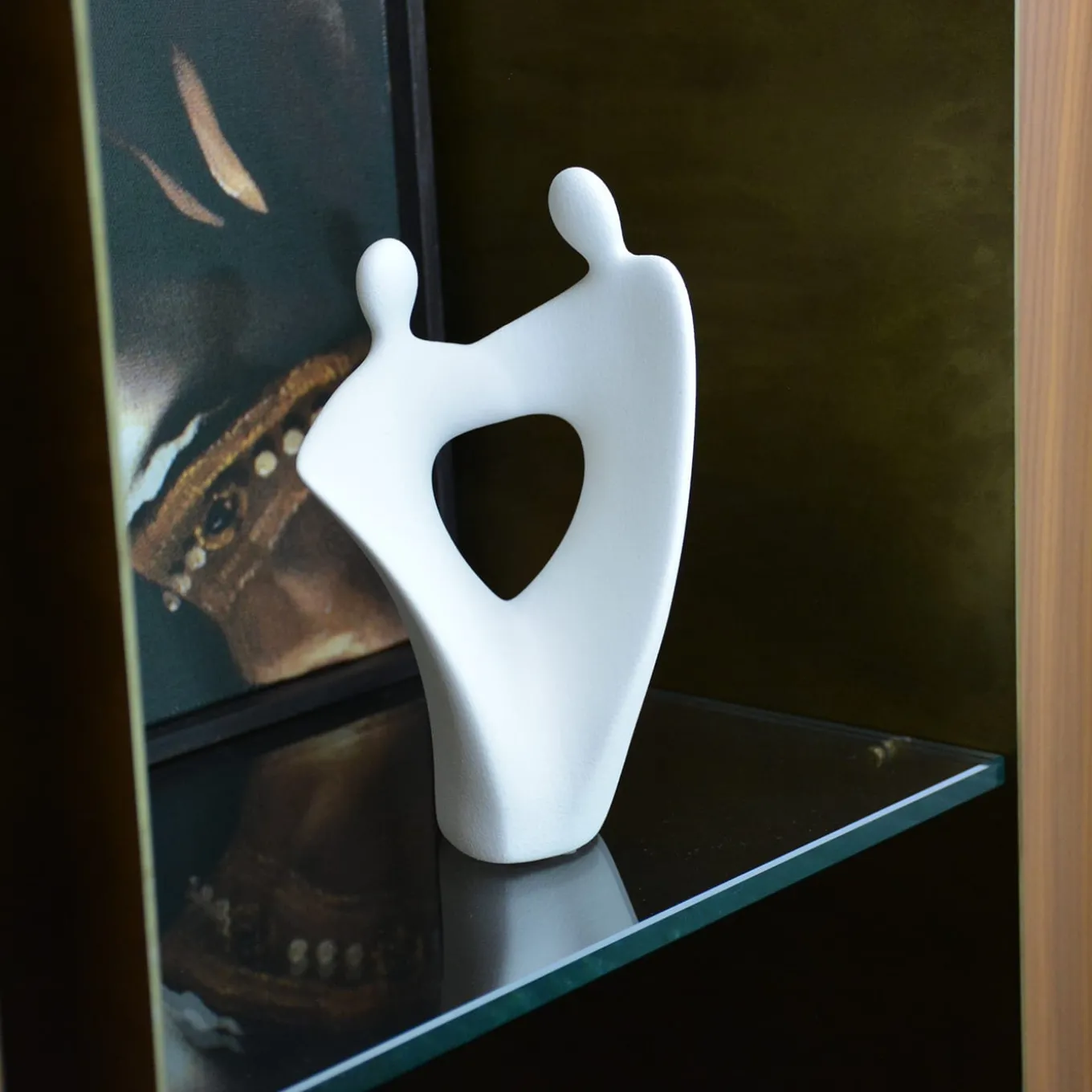 The Ensemble White porcelain stoneware Sculpture embodies the essence of connection and unity. This thoughtfully crafted sculpture serves as a poignant reminder of the joy and acceptance found in togetherness. Its unique design features two figures harmoniously intertwined, creating an inviting and warm focal point for any space. The porcelain stoneware construction offers a sophisticated yet versatile aesthetic, suitable for a variety of interior design styles. This decorative object adds depth and character to bookshelves, side tables, or display cabinets, making it an exceptional choice for those looking to enhance their home décor. With its engaging form and neutral tone, this sculpture seamlessly integrates into any environment, encouraging reflections on human connection and shared experiences.