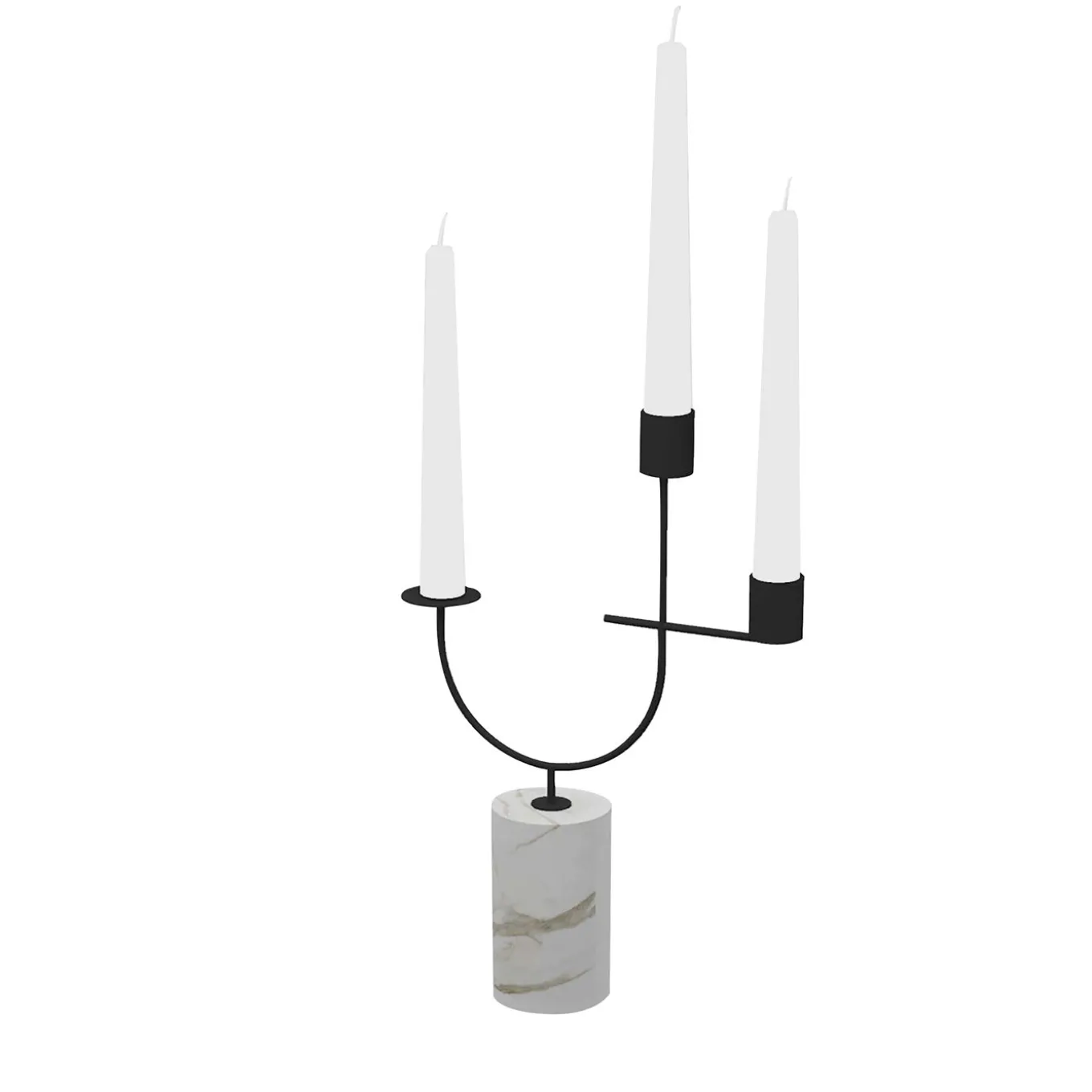 A stunningly lavish addition to a contemporary entryway, bedroom, or industrial living room, this spectacular candle holder delightfully plays on the concept of balance. Part of the Equilibrista Collection, this iconic design is composed of a fine White Carrara marble base and a black-lacquered metal structure with three candlesticks placed at different heights for a striking visual impact. Other colors and marble types are available upon request to the Concierge.
