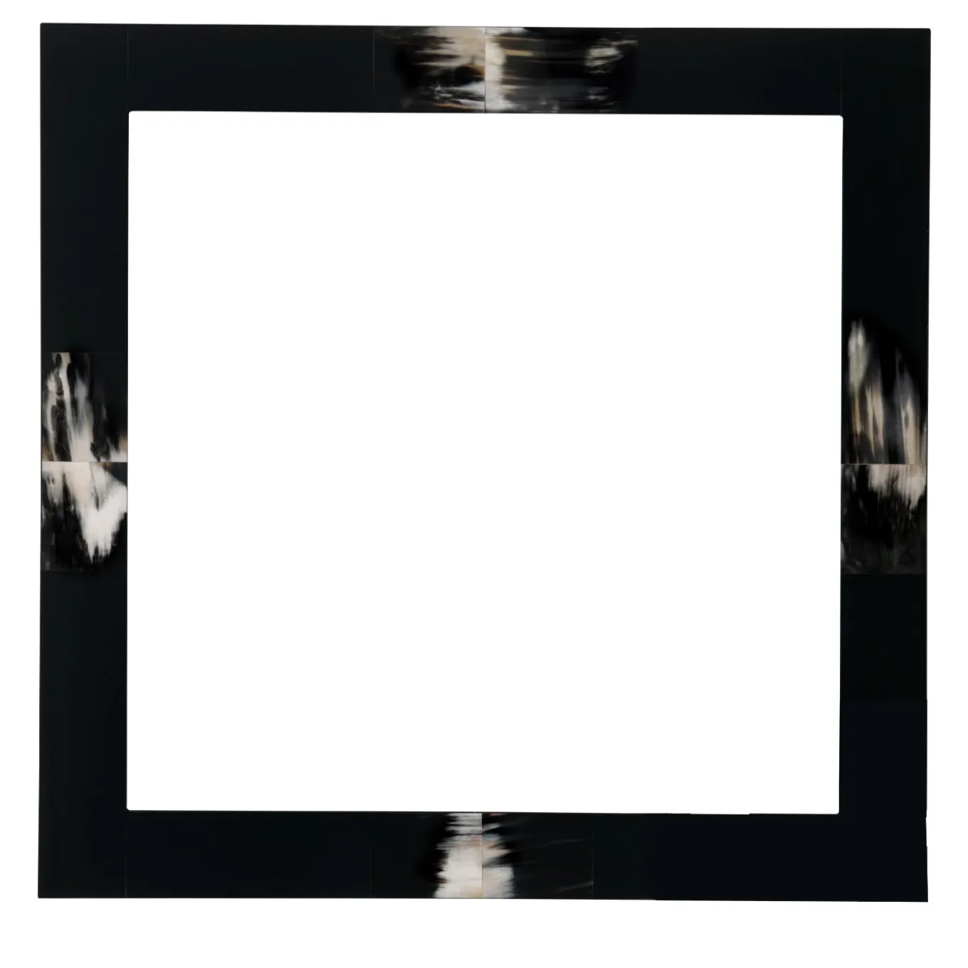 A spectacular manner in which to adorn the walls of any modern and stylish home, this Erasmo Wall Mirror, designed by Filippo Dini, features a polished black lacquered wood and dark horn on the square frame. A generous size of 100 x 100 cm ensures a dynamic statement wherever it is displayed.