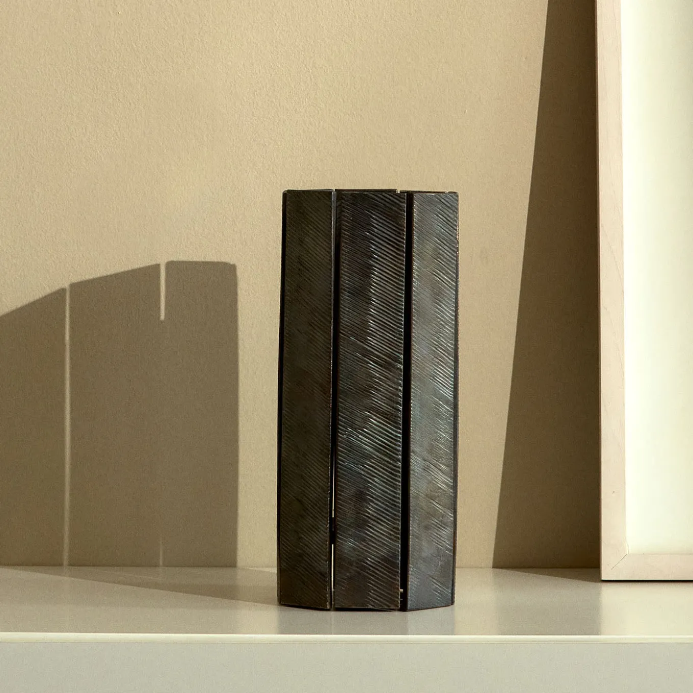 Essenza bridges the strength of metal and the welcoming familiarity of wood. Crafted with care, it narrates their encounter through a surface originally smooth that hides small knots and grooves, inviting tactile exploration between the cold metal and the evocative memory of wood. This fusion challenges expectations, composing a tactile symphony of materials.
