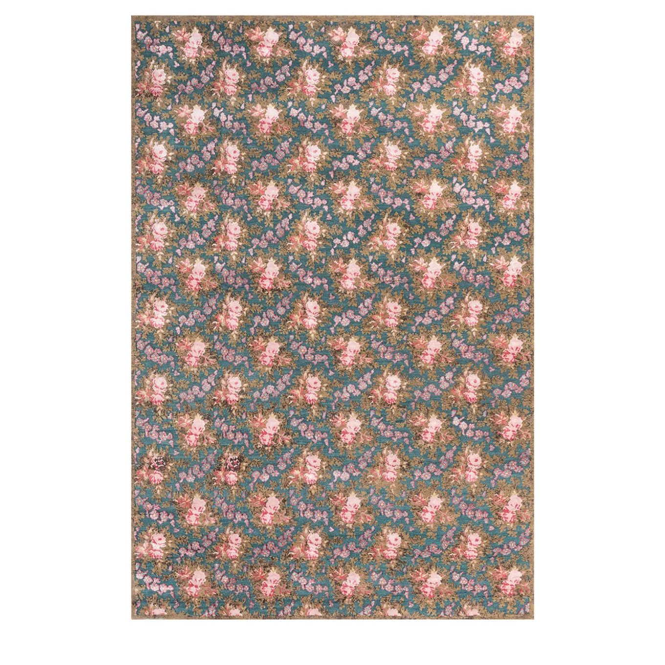 The Eugenie Hand-Knotted Rug, crafted from a luxurious blend of wool and bamboo silk, embodies the grandeur of the Second Empire Period in France. This exquisite piece pays homage to Empress Eugénie, showcasing intricate floral and tropical motifs that draw inspiration from the decorative arts of the era. Featuring a unique Gultarash carving technique—”finding the flower”—each design comes to life with high-definition sculpting, enhancing the complexity and visual appeal. Rendered in rich peacock blue and gold brown tones, this rug captures timeless sophistication while harmoniously merging vintage charm with modern craftsmanship. Meticulously hand-knotted in Rural India, this rug not only serves as a functional addition but also as a statement of elegance, making it an essential element of refined home décor.
