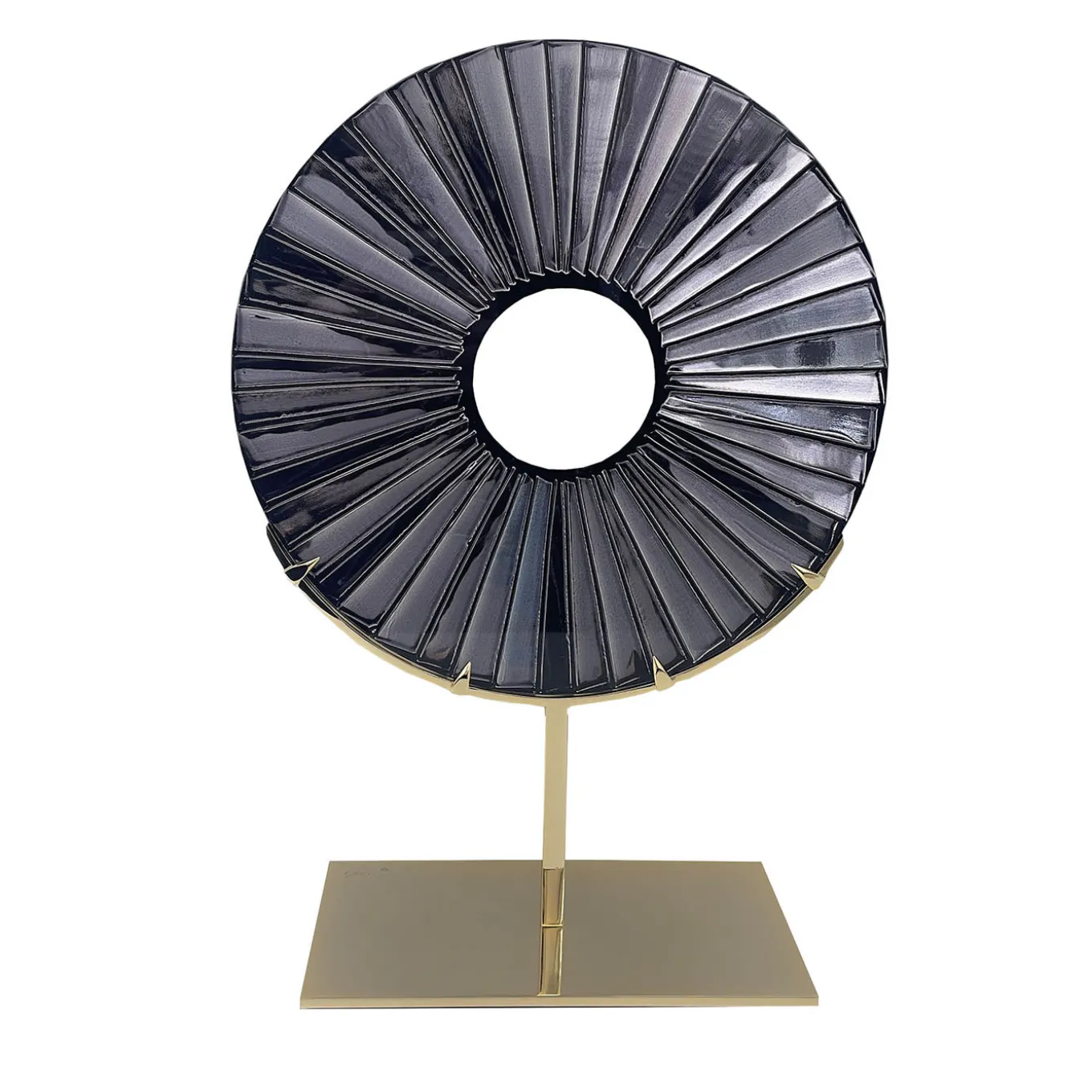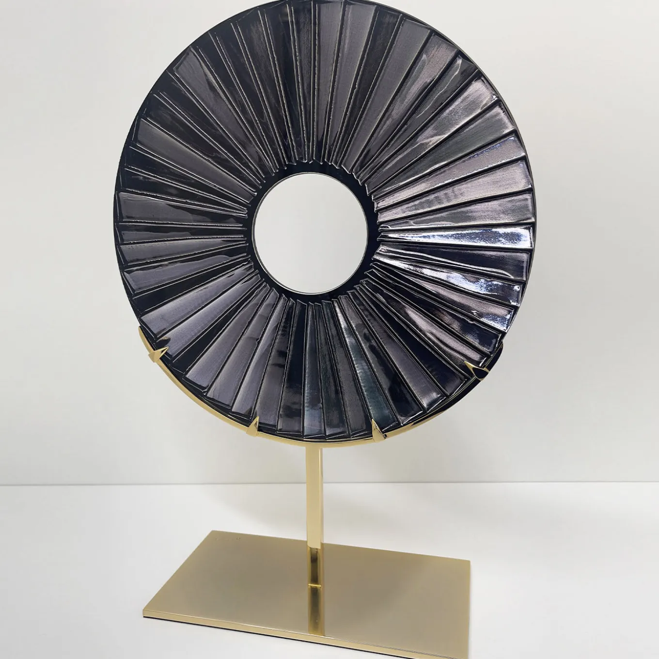 The ‘Eye’ is not only a luxury refined piece of furniture but it is also a hand-carved sculpture designed to embellish with uniqueness, beauty and charming any living area or bedroom. The structure is made with 24 Kt gold plated brass. On the front, the crystal has a black-colored finish with bright silver-red-purple reflections while on the back it has a matte silver finish. Every imperfection is to be considered a guarantee of naturalness and craftsmanship.