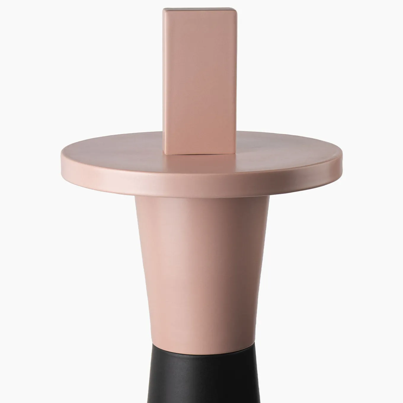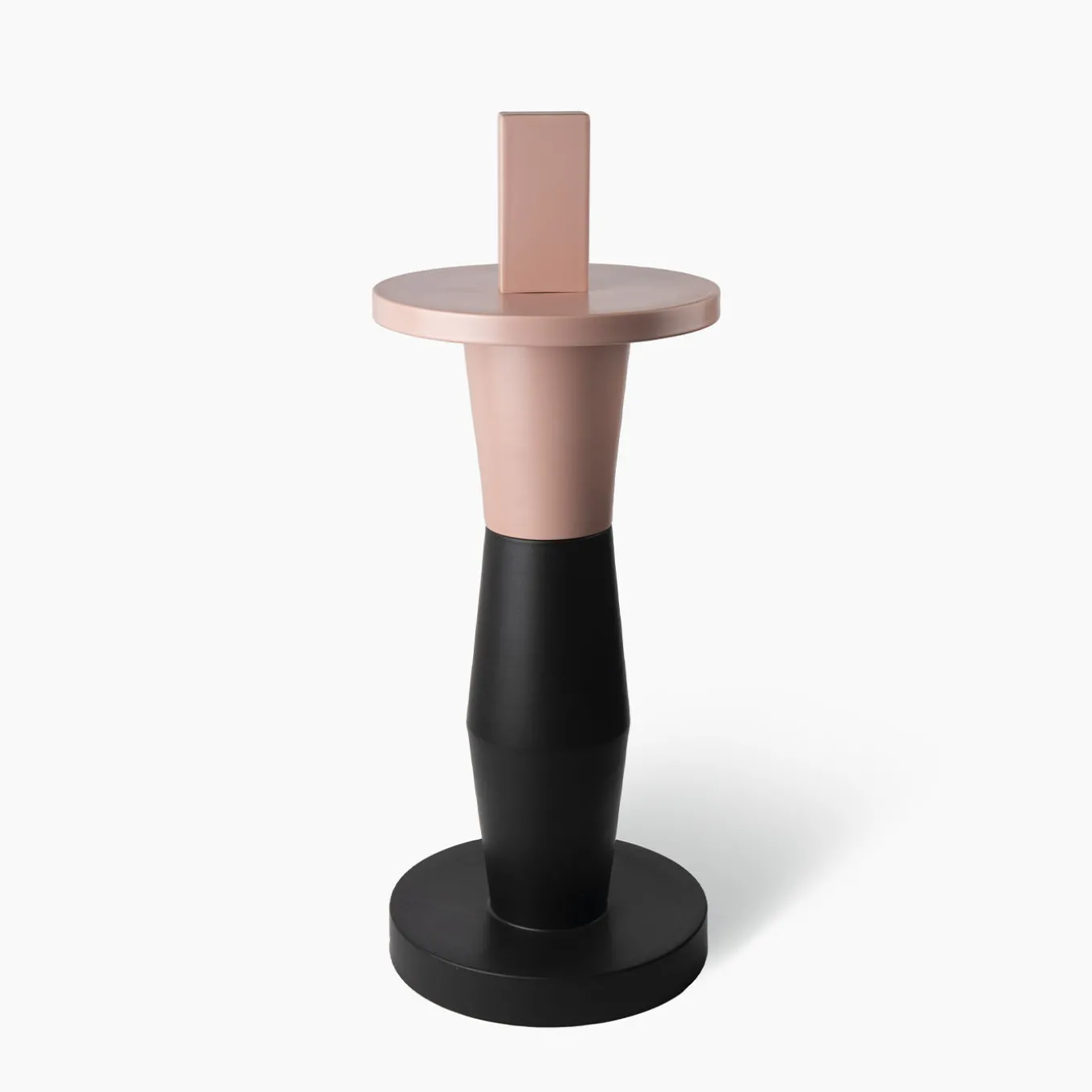 Capturing the unique post-modernist style of Nathalie du Pasquier, this sculpture is defined by bold geometric elements in different colors stacked in an abstract shape. Turned on a lathe and finished with a matte glaze, the black lower section features a round base with two truncated cones connected at the base, while the white top has a truncated cone with a round top with a rectangular finial. Synonymous with quality and design creativity, this superb sculpture makes a striking addition to a personal collection, infusing contemporary aesthetic into any interior.