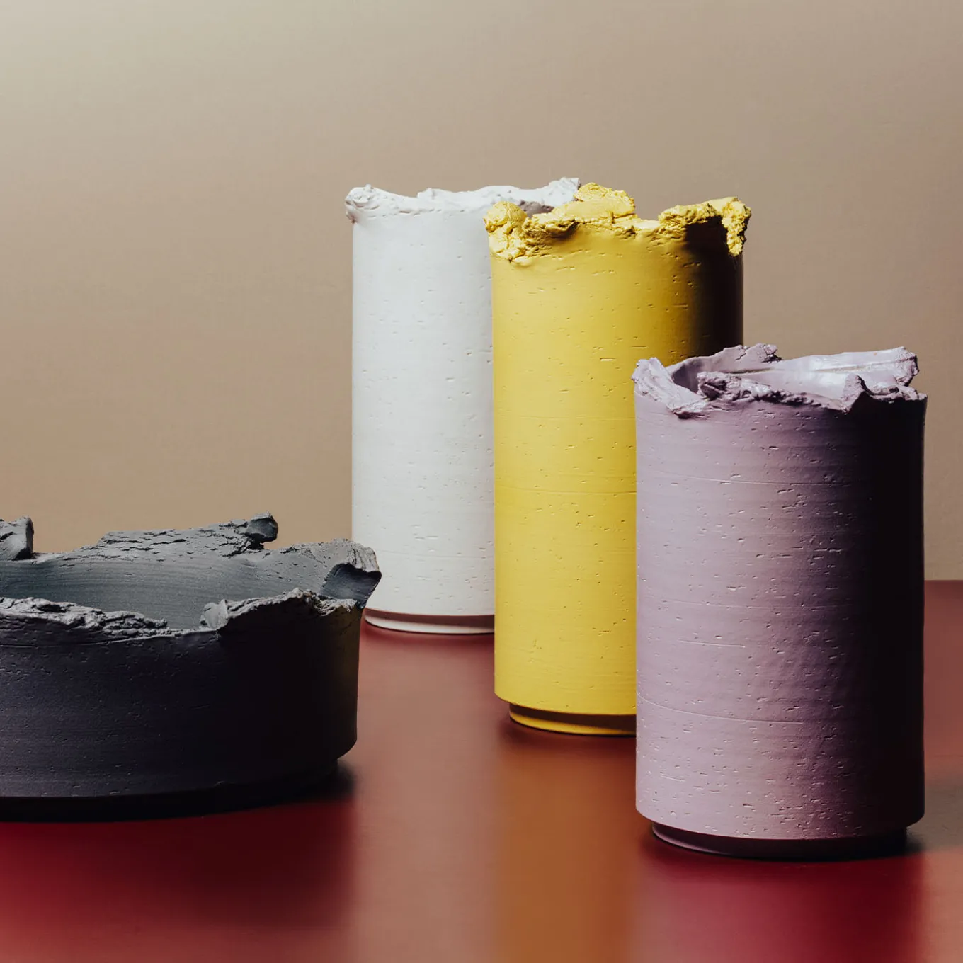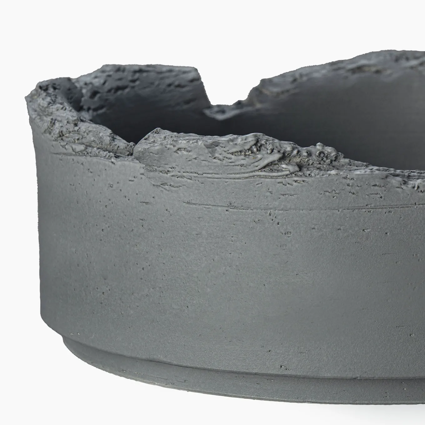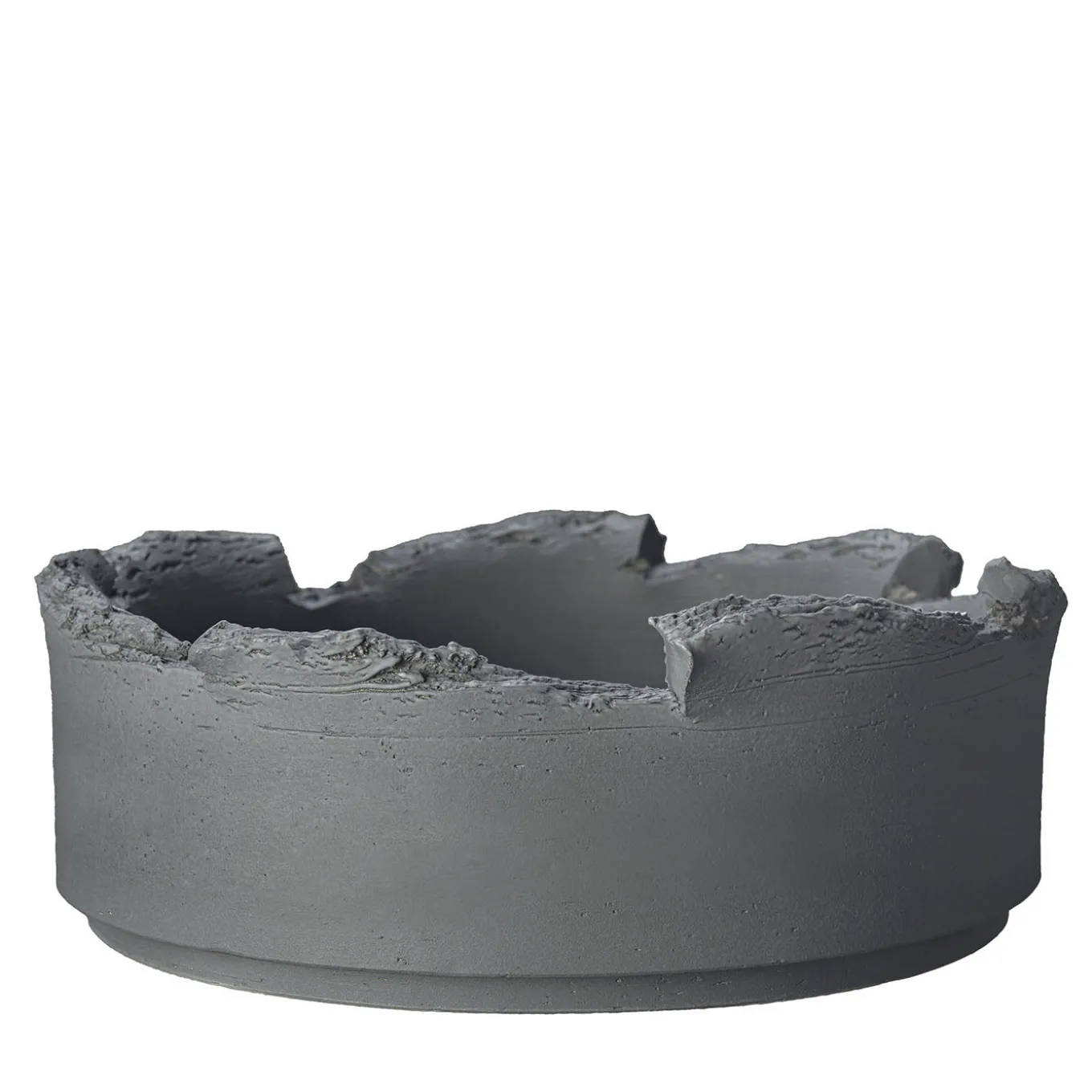 Defined by unadorned sophistication, this exquisite ceramic bowl is brimming with contemporary allure delving into the most authentic nature of forms and materials. The cylindrical silhouette is painted in a deep hue of gray and is slightly tapered at the base, the torn-up rim confirming the artistic value of this elegant design, showcased at the 2019 Milan Design Week.