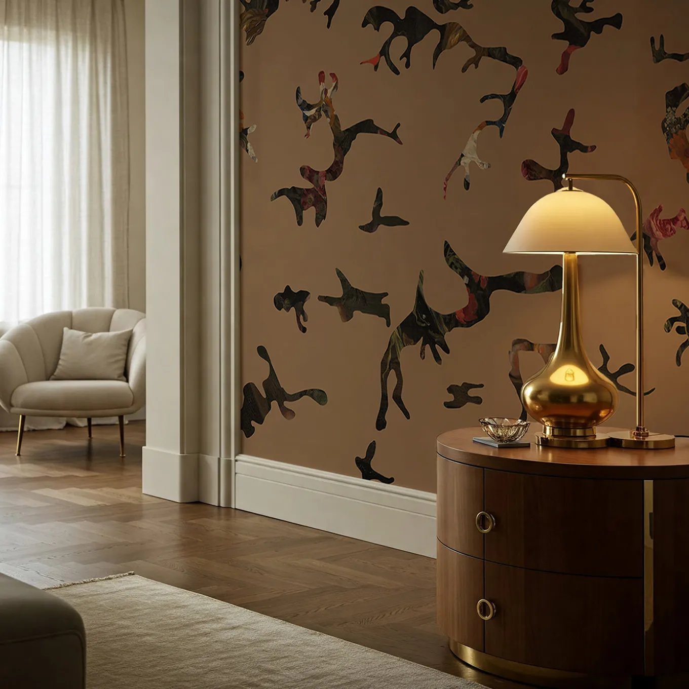 Find Me in the Dark wallpaper combines disruptive camouflage with detailed engravings for a unique visual effect. Printed on fine art wallpaper with a matte drawing paper texture, this eco-friendly cellulose-based product offers high-quality tactile perception. Part of the Racconti collection within Spazio Miscellanea by MaVoix VOL II, it carries FSC and Greenguard Gold certifications. Pricing is per square meter, and it is also available in a canvas texture option. For further information please contact the Cocnierge. Design by Magnus Gjoen.