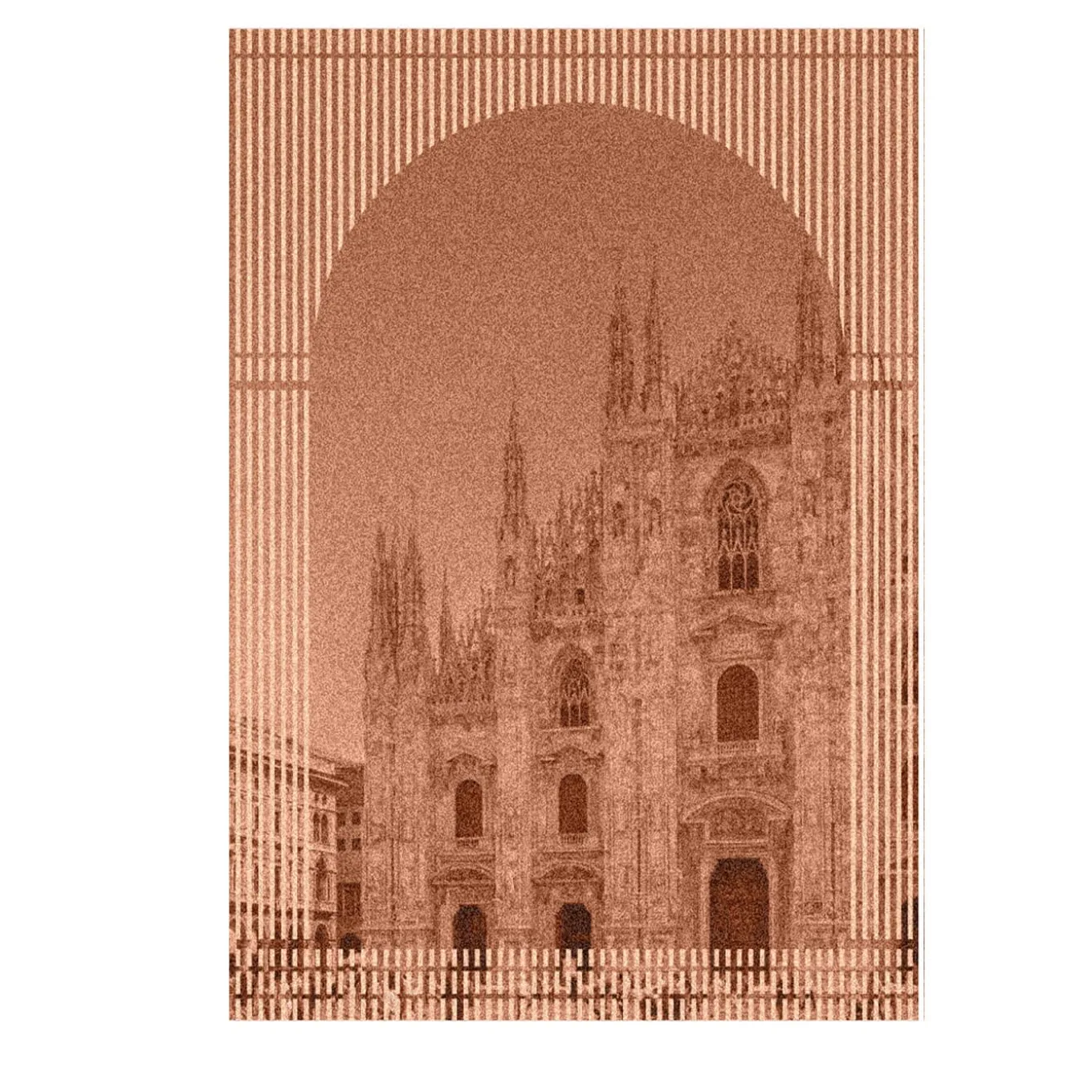 Part of a textile triptych with a dual function – blanket and tapestry, with each city displayed as a landscape seen from triforce belonging to different architectural styles. Jacquard-weave twith with piquè technique. 100% extra fine merino wool. 19.5 Microns.