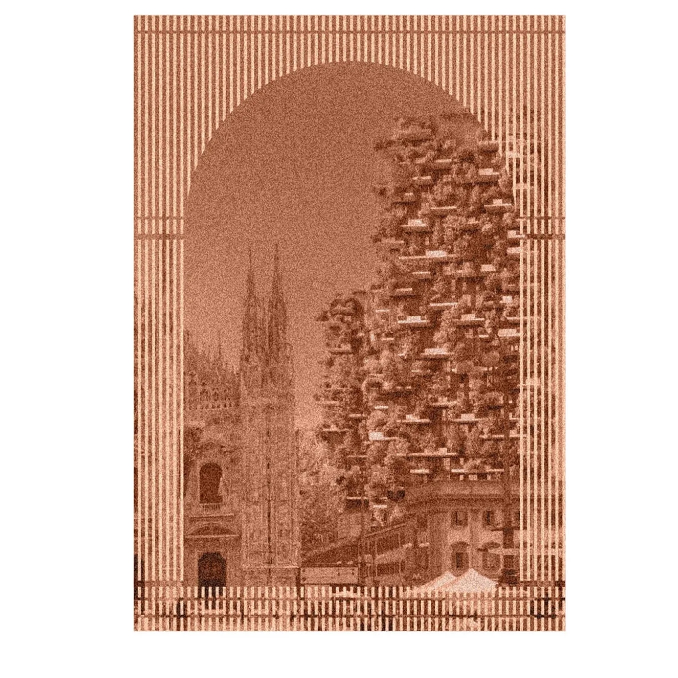 Part of a textile triptych with a dual function – blanket and tapestry, with each city displayed as a landscape seen from triforce belonging to different architectural styles. Jacquard-weave twith with piquè technique. 100% extra fine merino wool. 19.5 Microns.