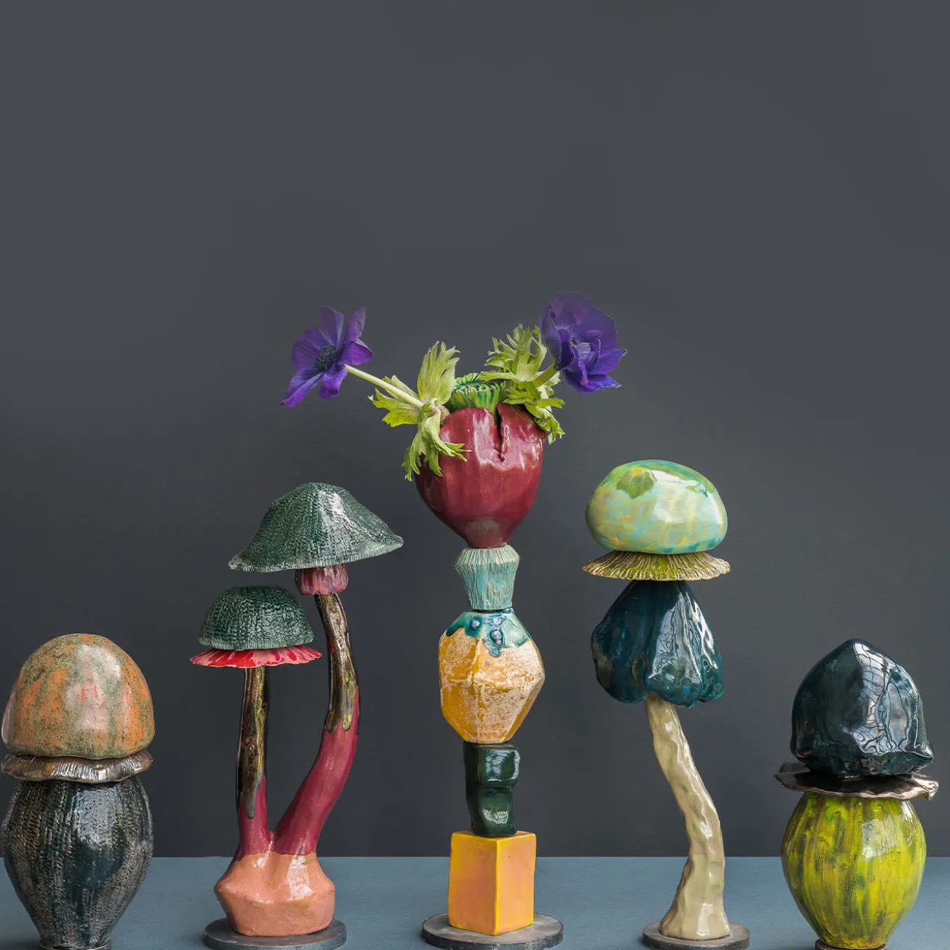 Ceramic sculpture inspired by the natural world of Mushrooms, made with different clays and techniques, every single piece is handcrafted and hand-painted thus making it unique. It has a rounded iron base to ensure a perfect balance. Funghi are Pop Icons: some people collect them, some others love to eat them, some heal themselves through their power and everybody has somehow a childhood memory of “fungi”.