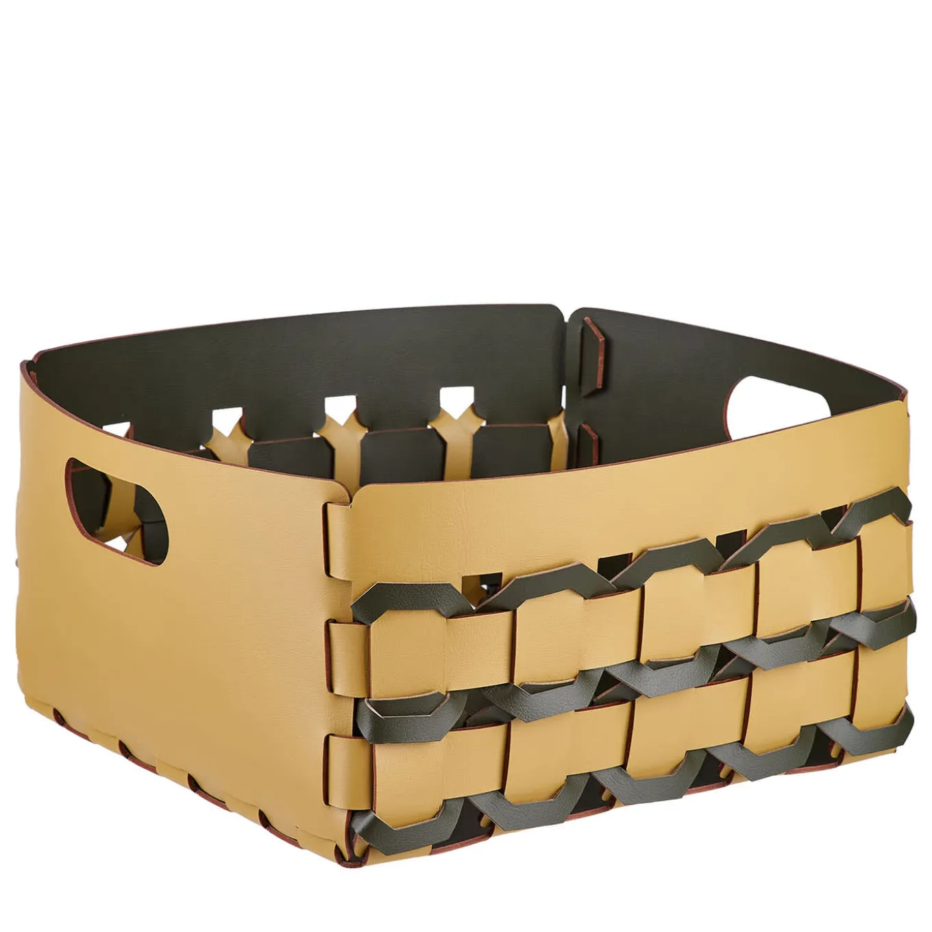 The geometric beauty of this mustard and olive basket creates a captivating visual display that combines different shapes such as octagons, squares, and circles in a stunning weave. Made with high-quality materials, this basket is designed to withstand the elements and stand the test of time. Its versatility makes it suitable for both indoor and outdoor use, providing a practical and beautiful solution for any space. Designed by Ekaterina Borovkova.