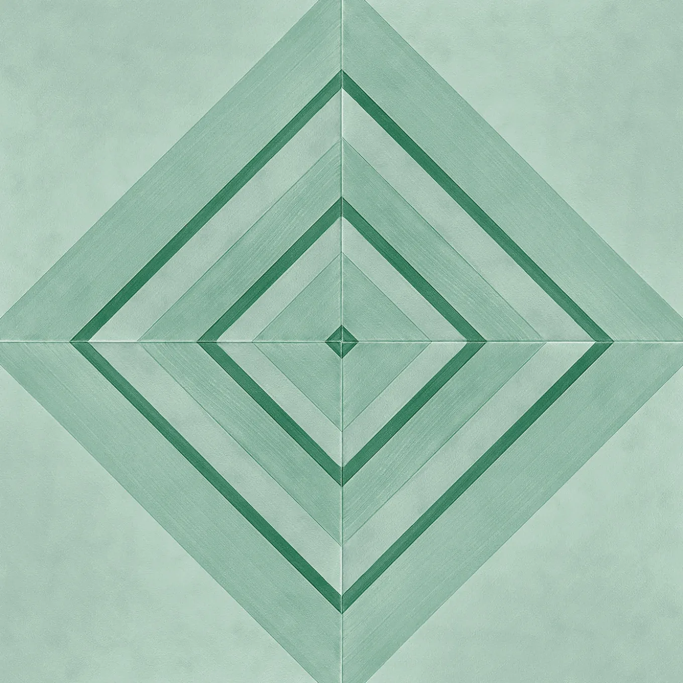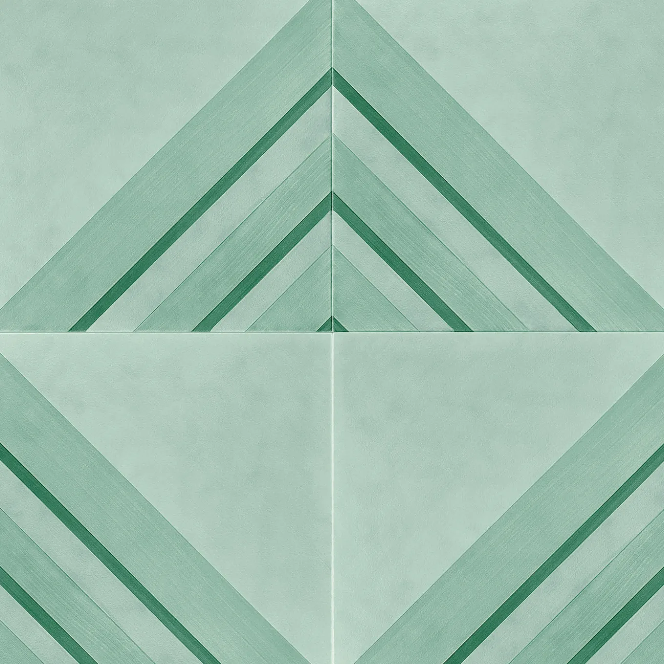 Geometrie d’Ombra is a collection of hand-decorated Grès Maiolicato tiles inspired by essential geometric forms—circles, lines, squares, diagonals, and triangles. It represents a refined blend of artisanal tradition and technological innovation. Each tile is crafted using a meticulous hand-decoration technique that creates a striking interplay of light and shadow, lending depth and volume to the geometric designs. The version featured here showcases a triangle motif and comes in Copper Green, an earthy and sophisticated shade that enhances the layered textures and gives the design a natural sense of movement. Versatile and expressive, the tiles can be mixed and matched to form unique compositions, offering endless possibilities for custom interiors. The price is listed per square meter. For more details, please contact the Concierge.