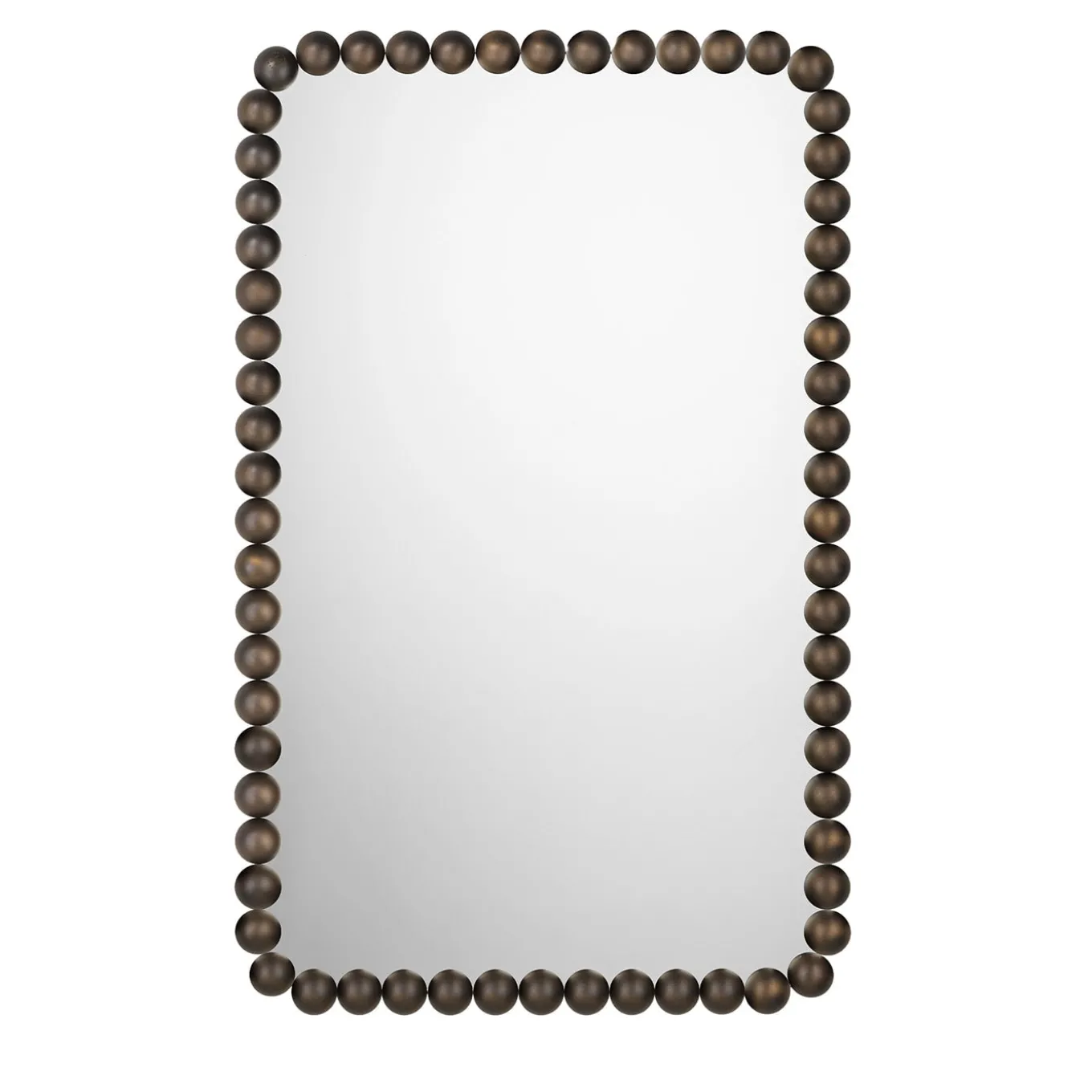 A sophisticated interplay of clean geometries, this wall mirror is distinguished by a rectangular frame of bronze-finished brass spheres. Ideally complementing a luminous contemporary-style interior decor, it is designed by Nika Zupanc for the Gioiello series. It is also available in chromed and black finishes as well as other shapes, please consult the Artemest catalog for options.