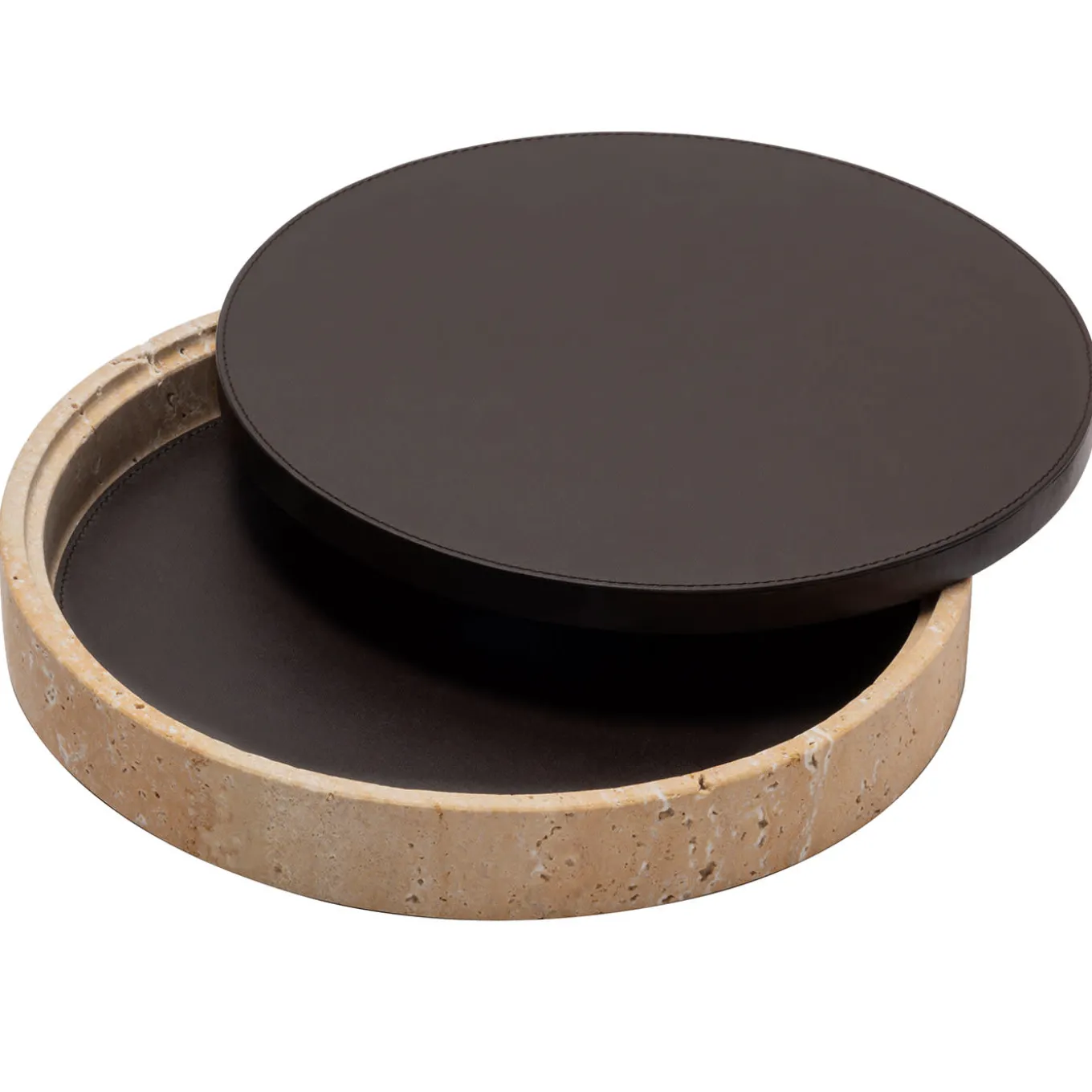 Featuring minimal geometric shapes, these boxes combine the beauty of travertine in several nuances of choice with the finest Italian leather. Custom sizes are available on request.