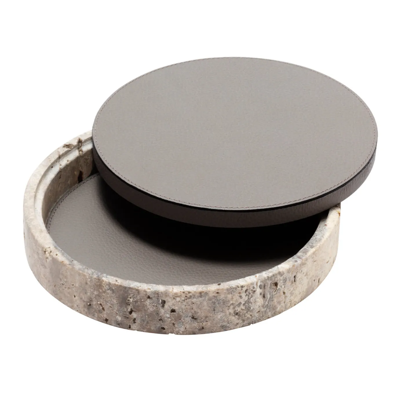 Featuring minimal geometric shapes, these boxes combine the beauty of travertine in several nuances of choice with the finest Italian leather. Custom sizes are available on request.