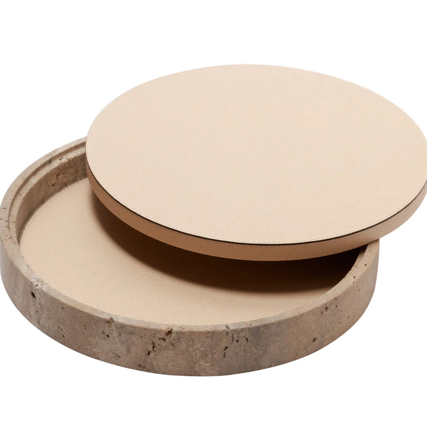 Featuring minimal geometric shapes, these boxes combine the beauty of travertine in several nuances of choice with the finest Italian leather. Custom sizes are available on request.