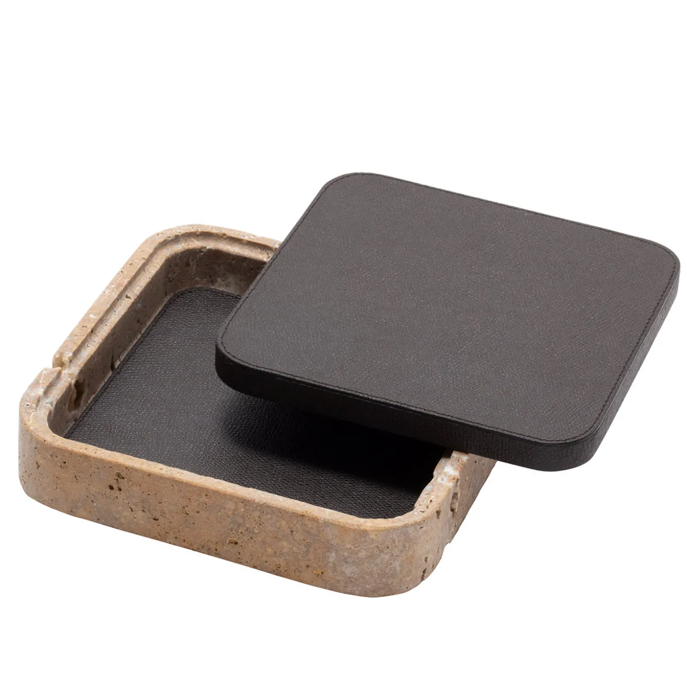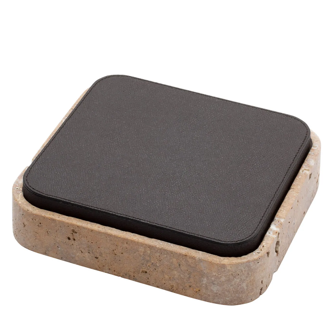 Featuring minimal geometric shapes, these boxes combine the beauty of travertine in several nuances of choice with the finest Italian leather. Custom sizes are available on request.