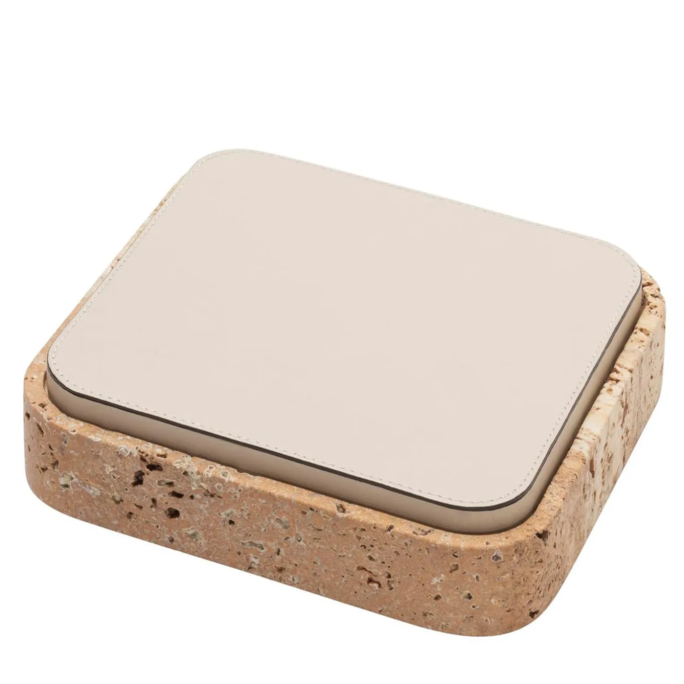 Featuring minimal geometric shapes, these boxes combine the beauty of travertine in several nuances of choice with the finest Italian leather. Custom sizes are available on request.