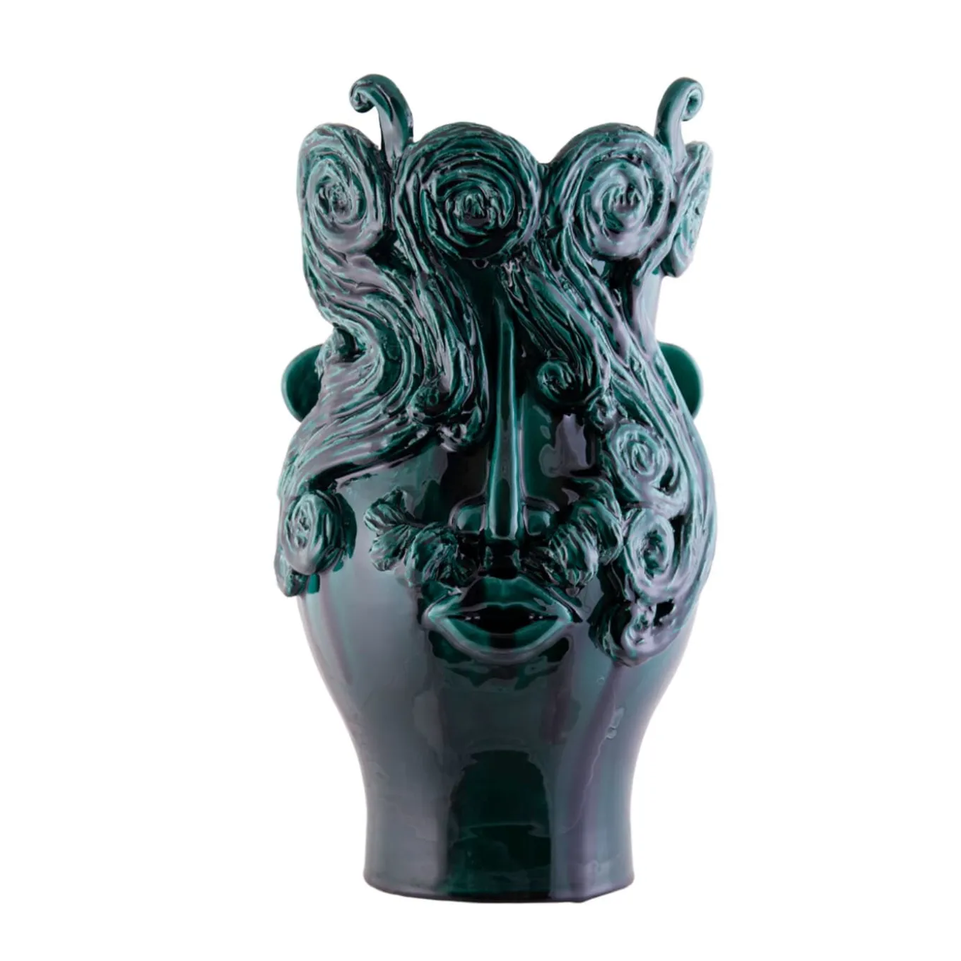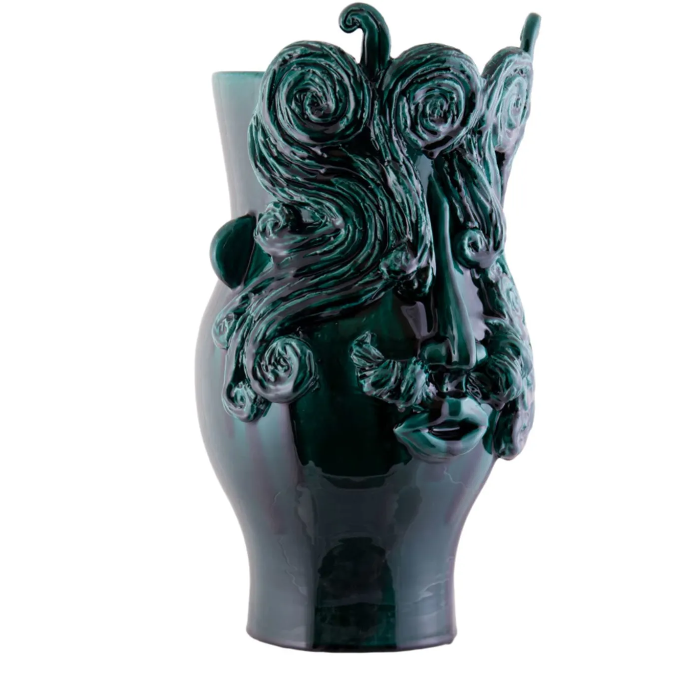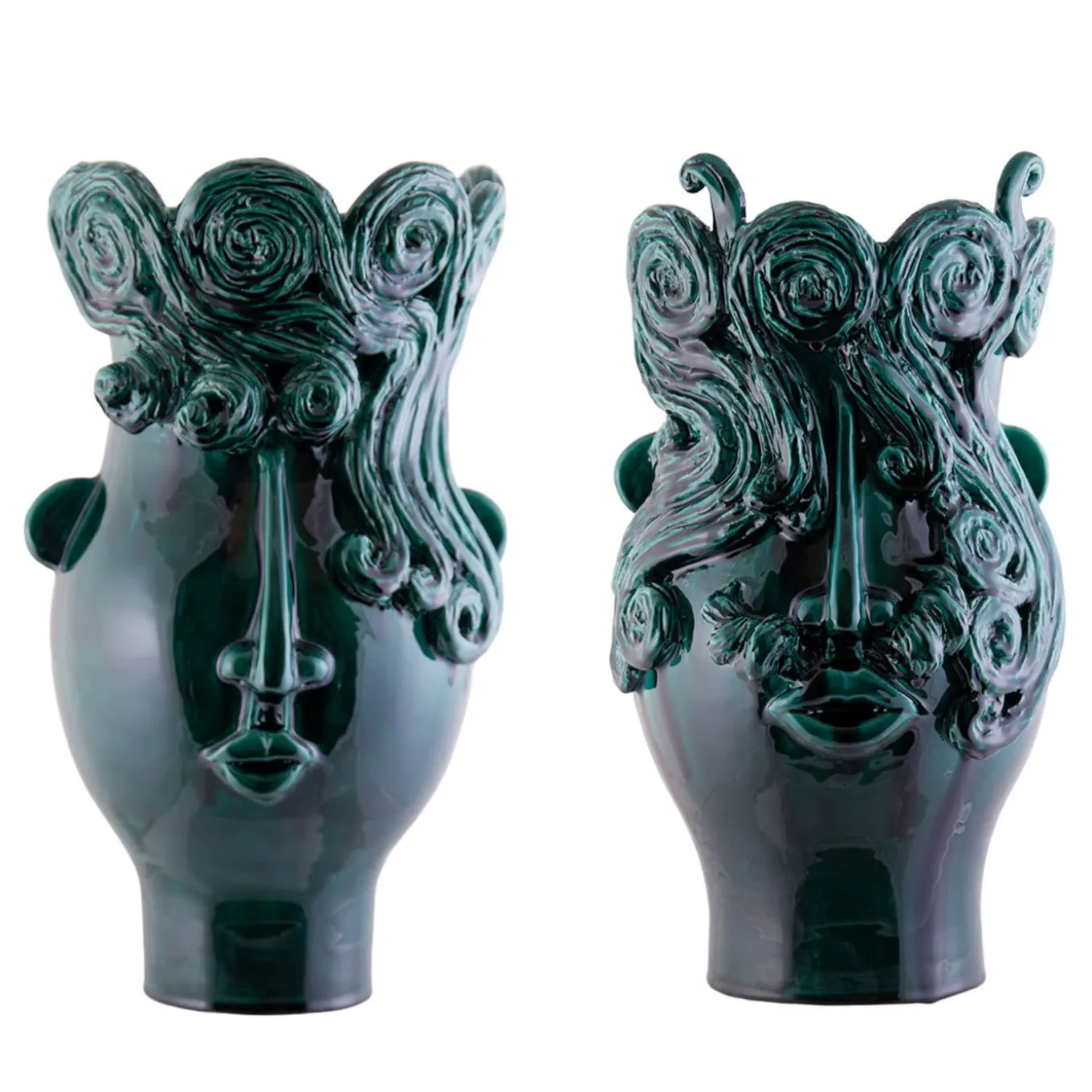 These two vases represent the Grooms in Green, they travel far, but their heart is in Sicily, among the capers of Salina and the olives of Belice. They walk in pairs, but sometimes they can be separated. Please, contact the Concierge for further information.