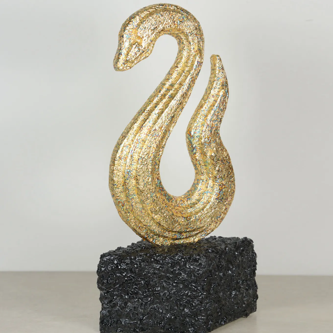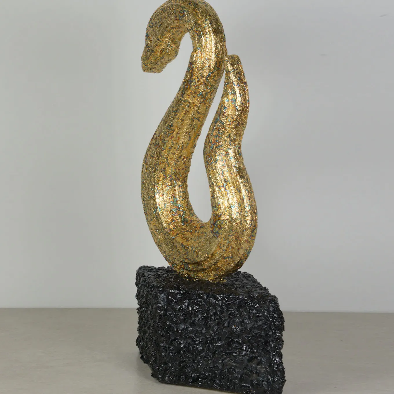 This Golden Snake figurine is a striking addition to any décor, artfully crafted from durable polyurethane and detailed with a textured relief finish. The gold-oxidized leaf finish adds an elegant touch. Resting on a robust marble base, the figurine is accented with black enamel, creating a stunning visual contrast.