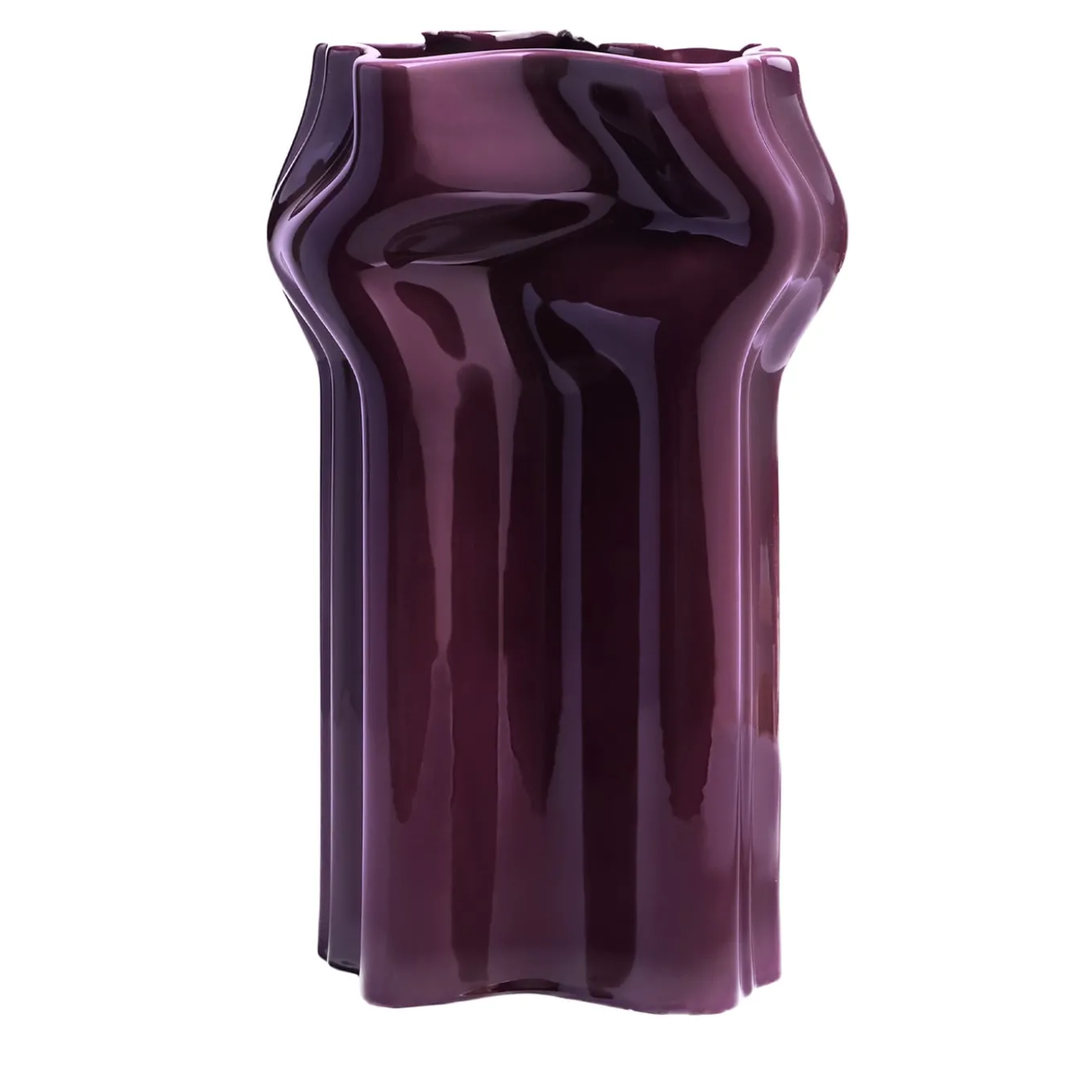 A sculptural design that will imbue a contemporary interior with unparalleled elegance, this ceramic vase features a boldly shaped silhouette that creates a striking interplay of lights and shadows. Lacquered in an intense purple shade, it is finished with a polished effect that intensifies its precious game of lights.