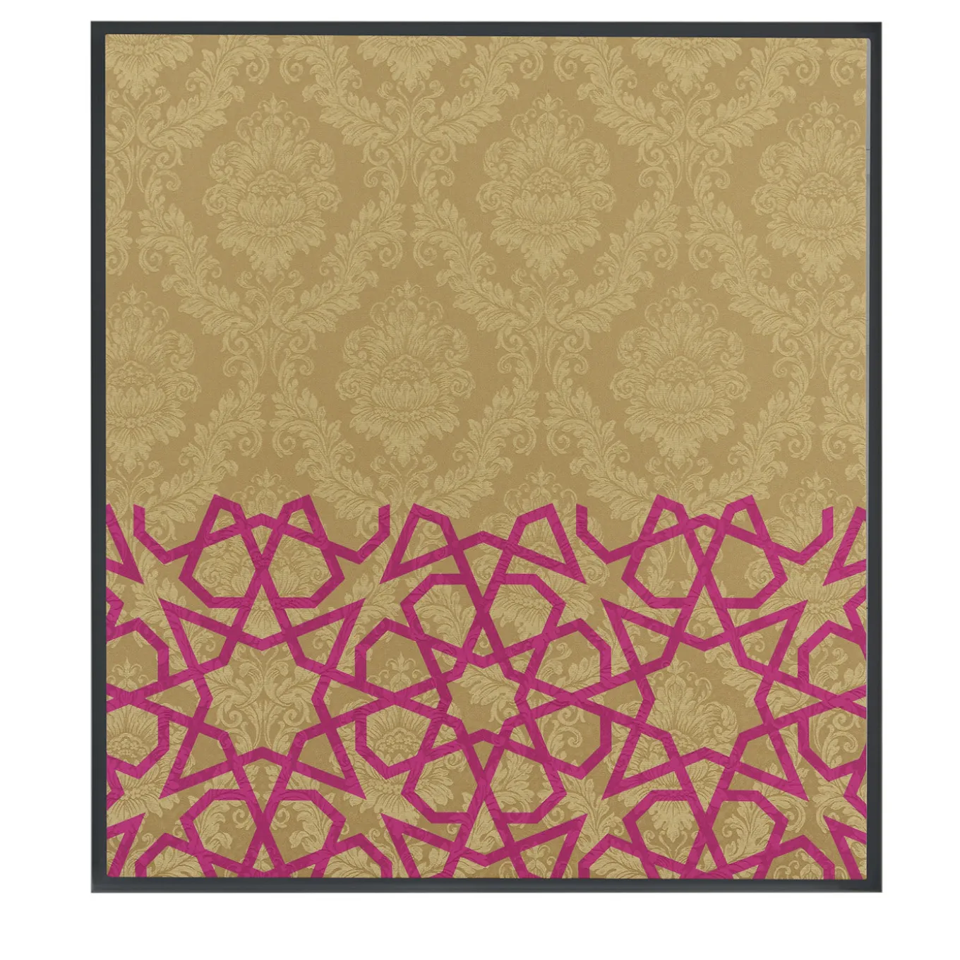 A harmonious interaction between art and craftsmanship marks this stunning decorative panel by Amelia Corvino. Crafted in the most prestigious Venetian weaver’s shops, it is fashioned of gold damask and internally filled with fine cotton. Just like a musical counterpoint (“contrappunto” in Italian), the piece boasts a unique motif that combines the typical western, damask pattern with an oriental geometric motif belonging to Islamic art. The wooden frame is available upon request.