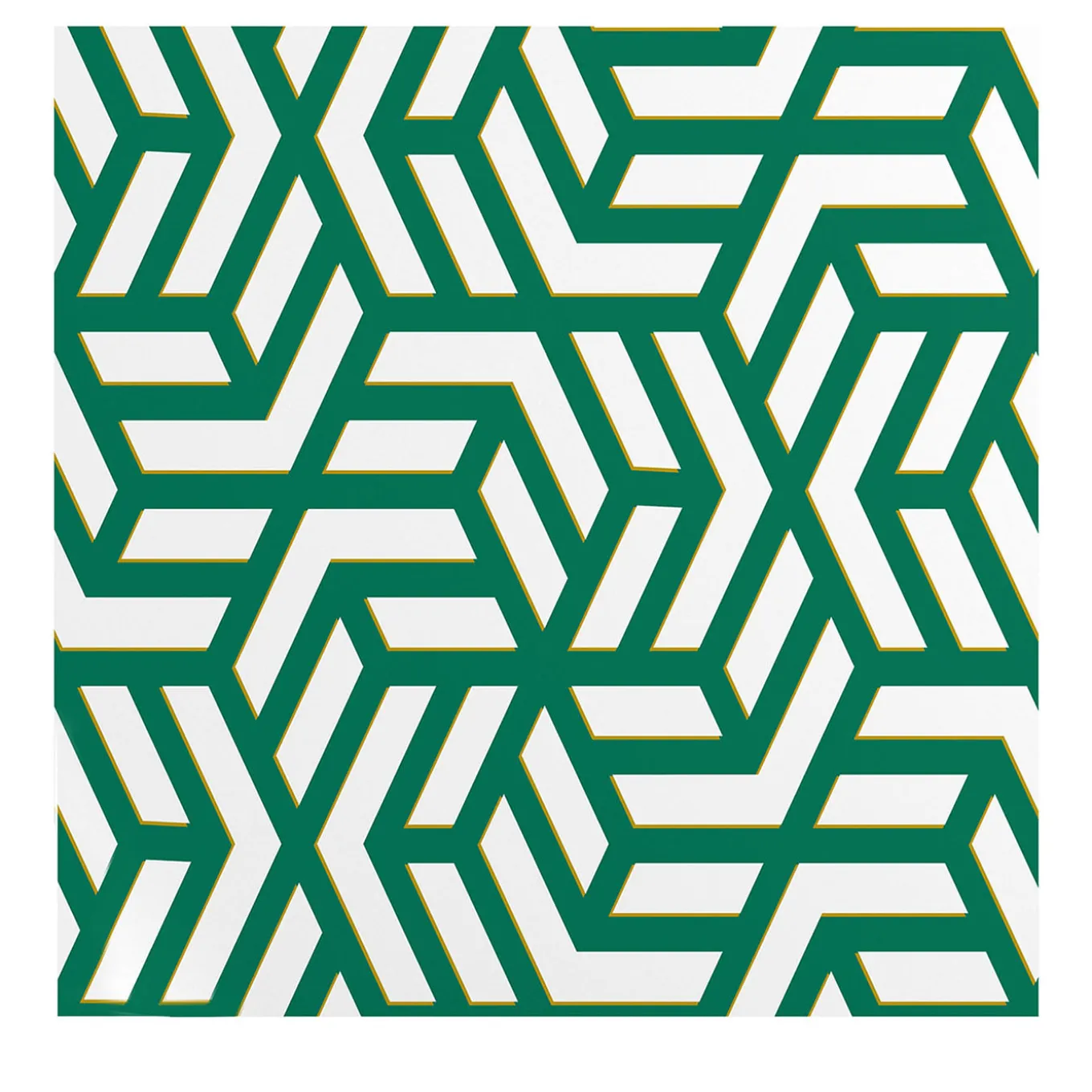 The wallpaper is made from 100% ecological paper, printed with vegan, water-based inks, and free from chemicals and solvents. Each package contains eight sheets. Inspired by 18th-century English tradition and printed in Italy, it’s perfect for walls, shelves, and furniture. The print depicts a green and white geometric pattern in Mid-Century Style. The simple colors and basic printing can be easily combined. The price refers to one package containing 8 sheets of premium wallpaper. Each sheet measures 27.5 x 39.4 inches (70 x 100 cm), for a total coverage of 59.2 sq. ft. (5 mq).