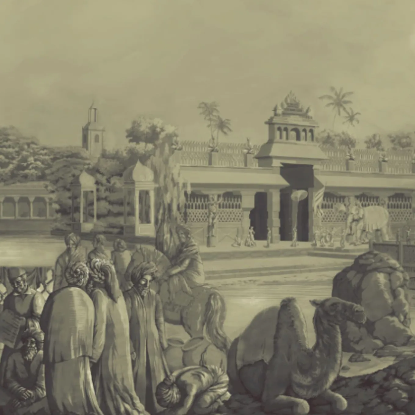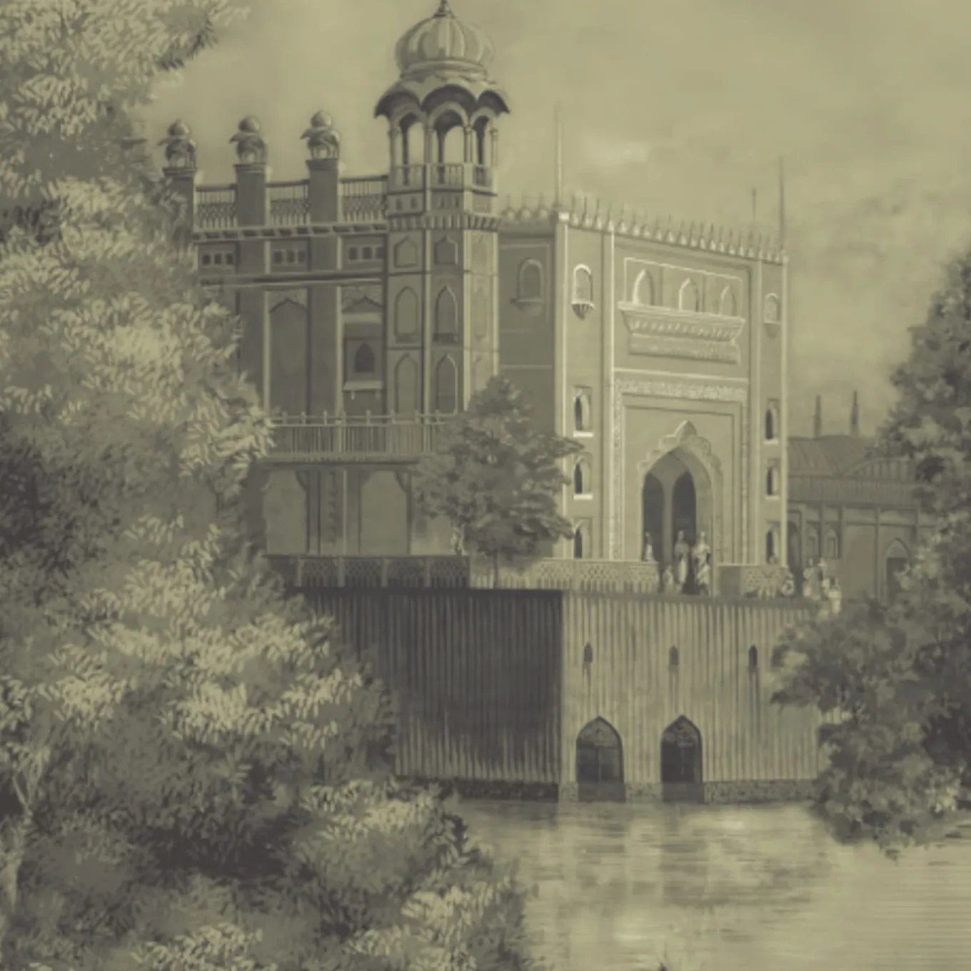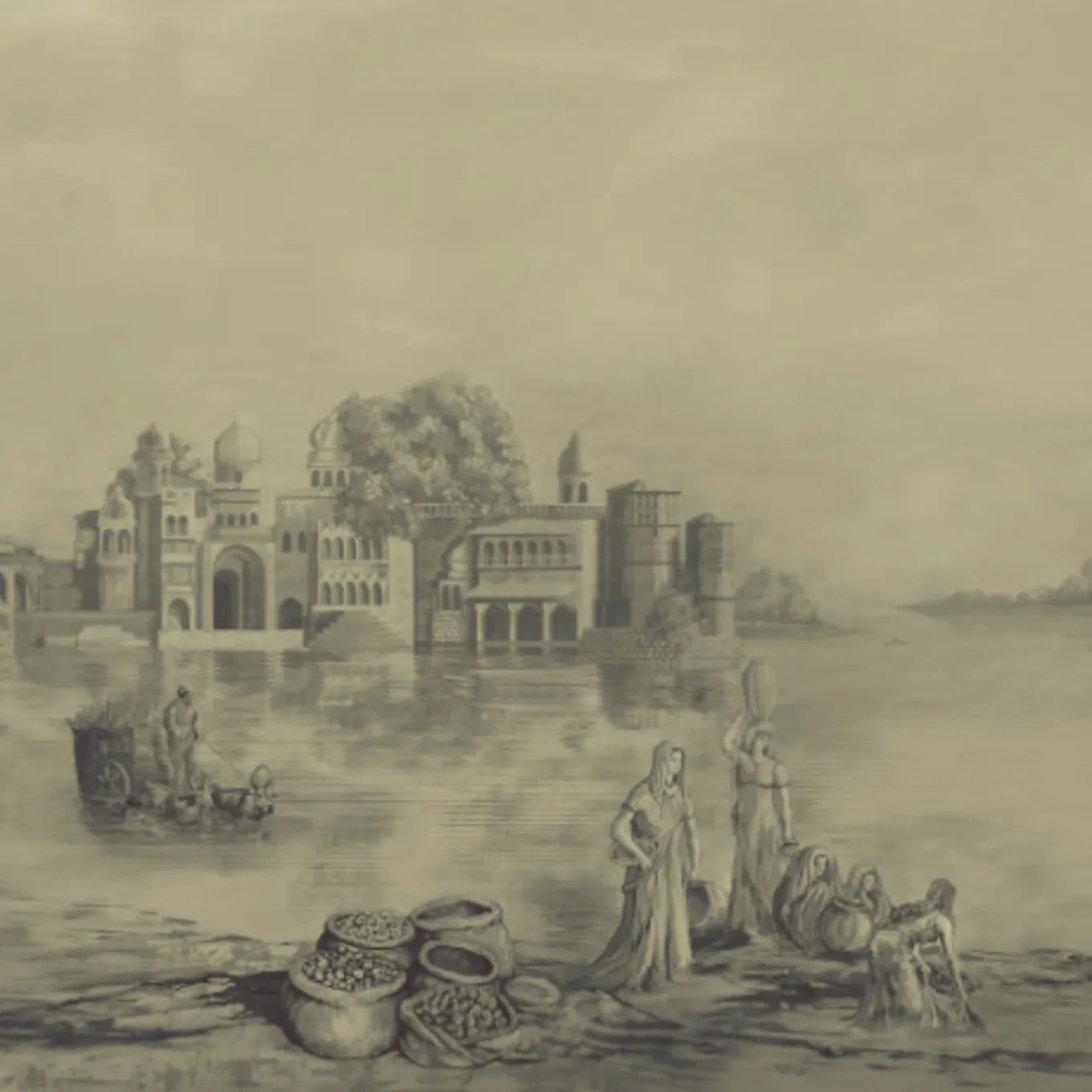 Green & Gold Darshan Panorama Polyester Wallcovering Fabric