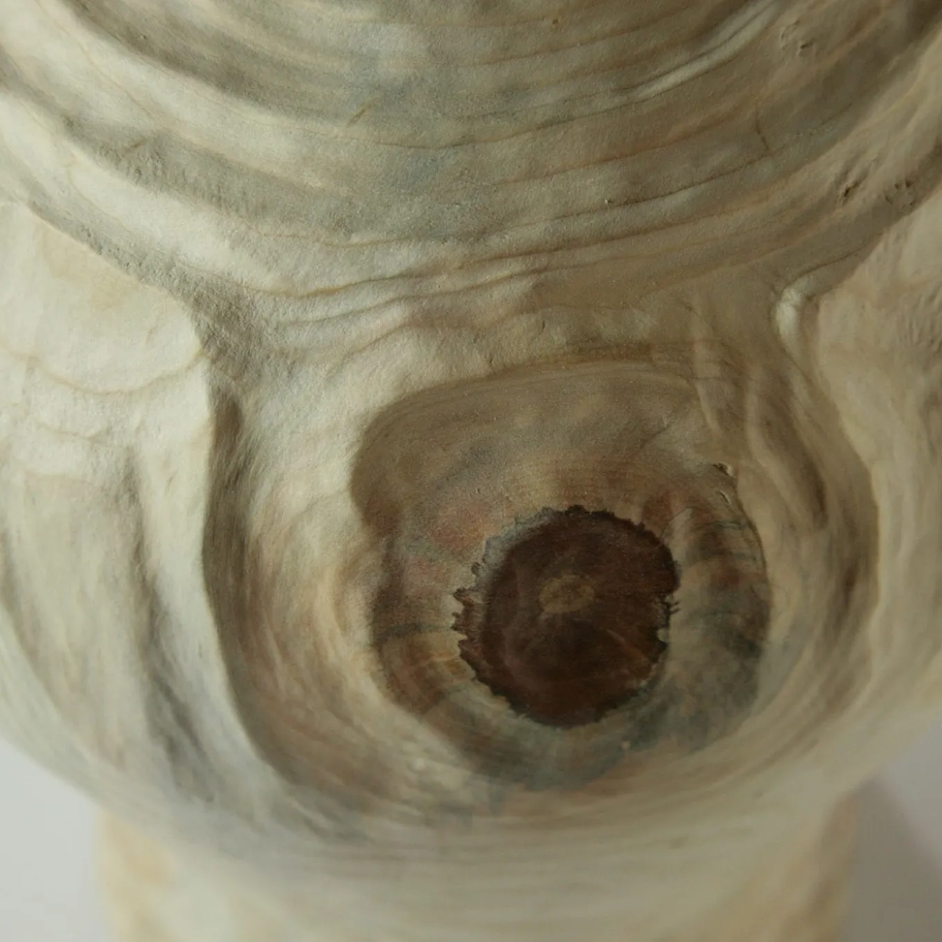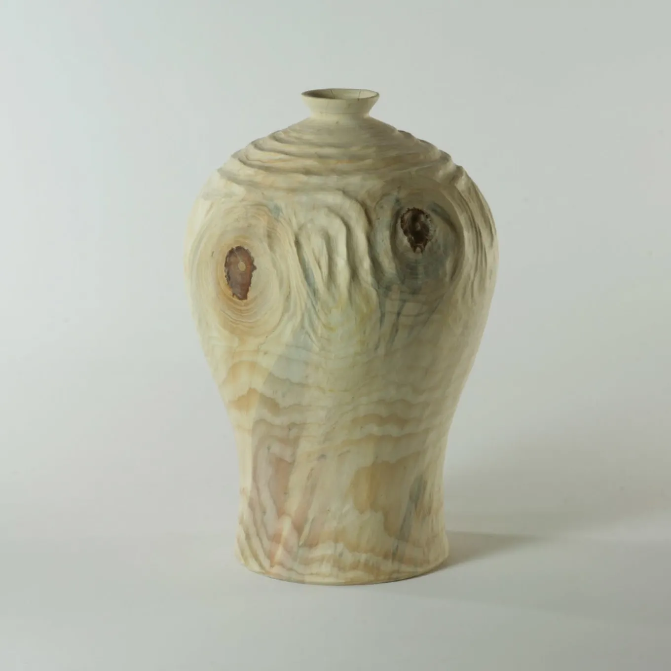This singular vase painstakingly carved by hand from a single block of araucaria wood evokes the elegant atmospheres of ancient Korea with its traditional shape. Its unique swirls and grain are emphasized by means of the Groove FTG (which stands for Follow The Grain) technique, where the grooves follow the natural grain, completing the design.