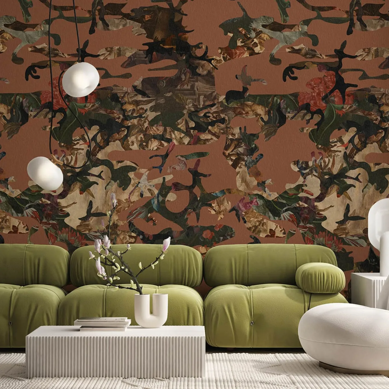 Pulling together various inspirations Gjoen creates a multilayered artwork of discovery, the more you look the more you find. The base of the camouflage depicts the ceiling of Giovanni Battista Tiepolo’s “Nuptial Allegory” at the Ca’ Rezzonico in Venice. Collection: Tales Part of Space Miscellanea by MaVoix, artist: Magnus Gjoen. Printed on fine art. It is an eco-friendly support made out of cellulose that keeps a very high qualitative perception. Retro NWB. Price is per square meter.