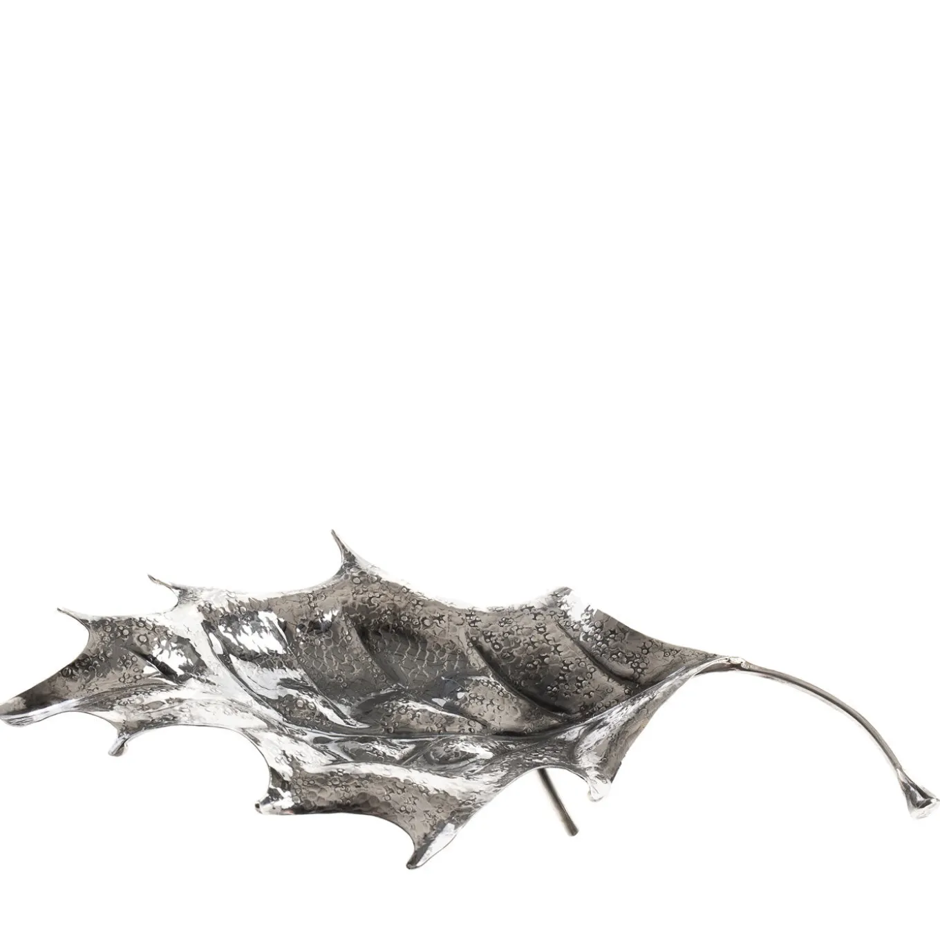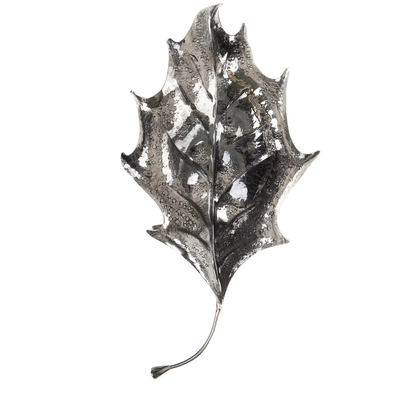Single holly leaf made of scintillating sterling silver. This exquisite piece was embossed and entirely hand-engraved by the master silversmiths of Fratelli Lisi, showing remarkable detail on the blade, midrib and veins.