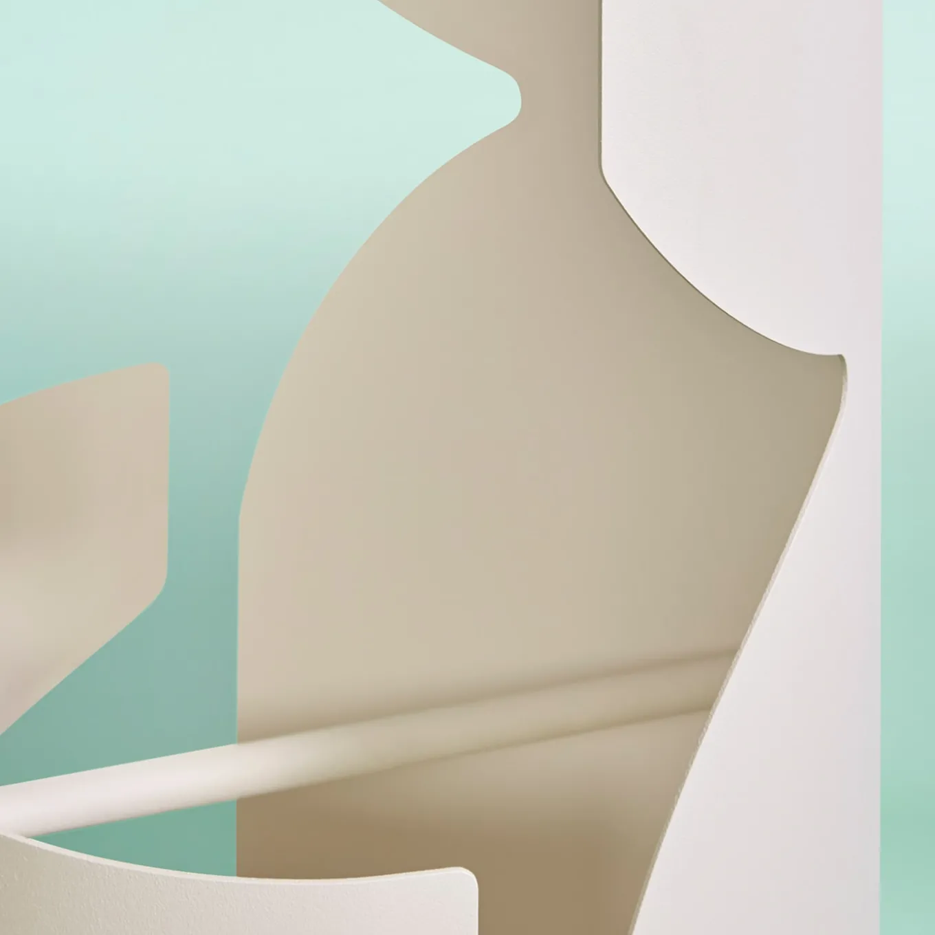 Hug White umbrella holder designed by MM Company features two curved metal sheets that embrace each other, forming a unique geometric silhouette. Its minimalist design brings a clean, sculptural presence to any space while offering functional umbrella storage. The crisp white finish enhances its contemporary appeal and suits a wide range of interiors. Other color options are available in the Artemest catalog.