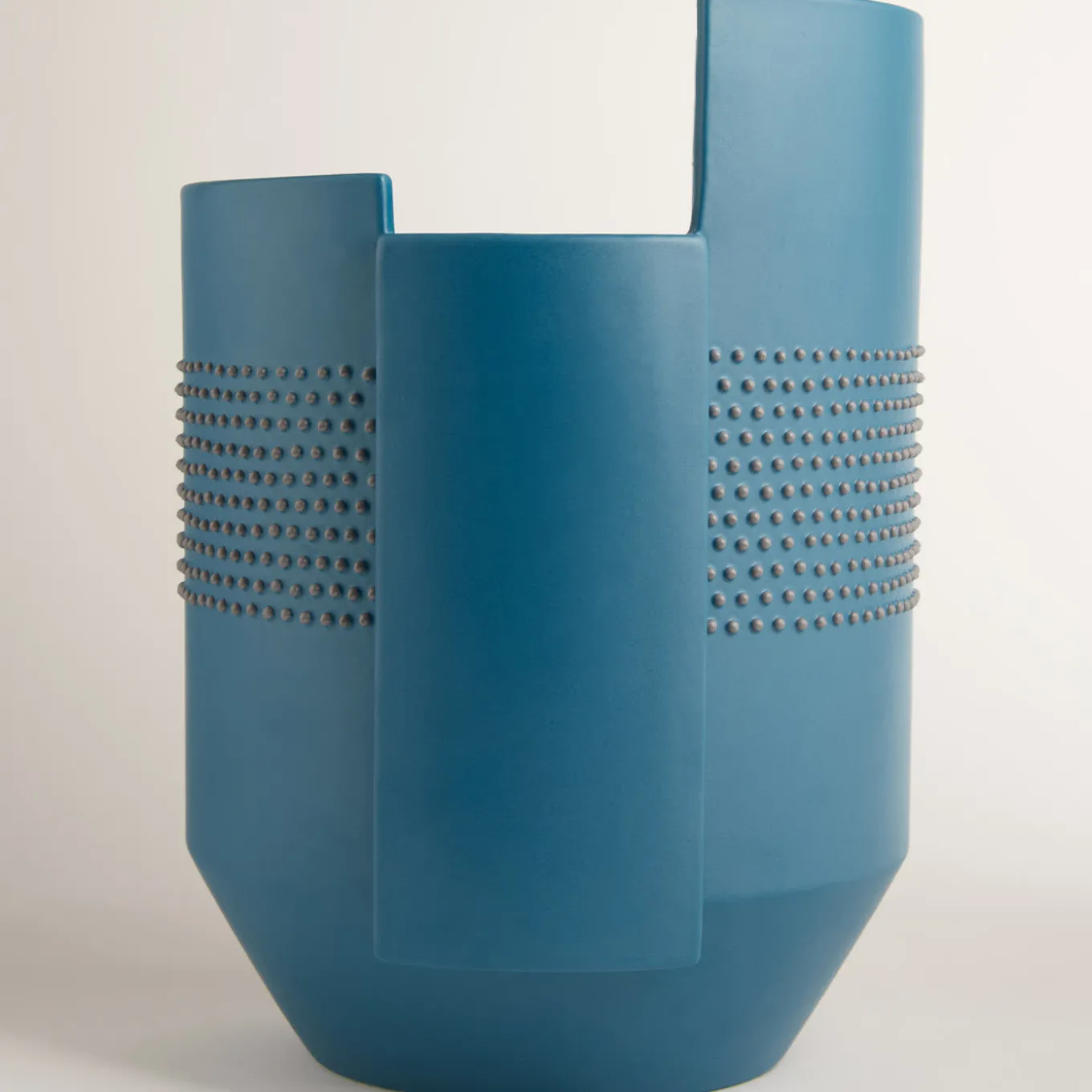 At first glance, the Hugo vase appears simple and linear and takes on a decisive and incisive character thanks to the decorative particularity of the Riccio. The name Hugo well interprets its aesthetics. The Riccio decoration is a standard, a classic in the history of Bagni/Nuoveforme ceramics since the early seventies, when it was conceived by Alvino Bagni who, after fine-tuning it, also designed and created special equipment to perform this decoration in the best possible way.